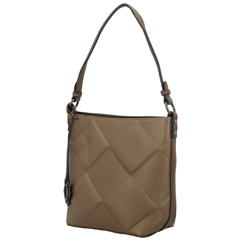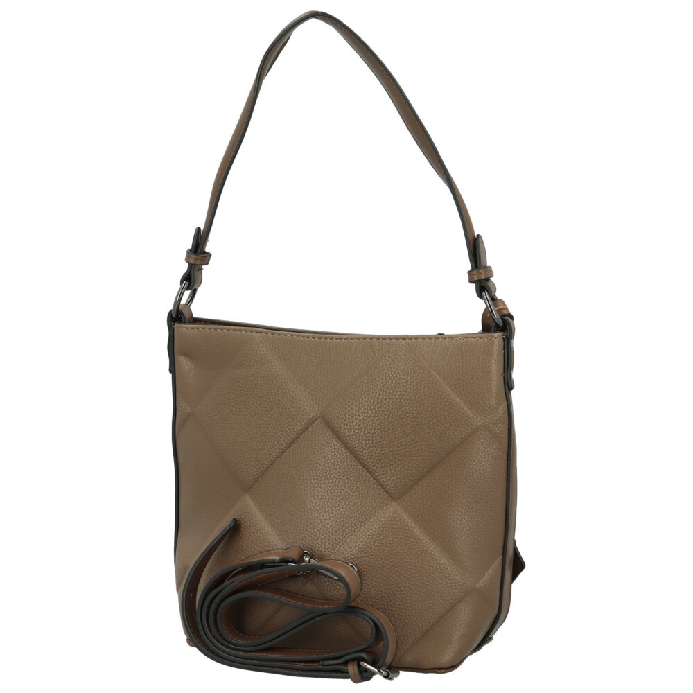 Táto dámska kabelka z mäkkej, ale pevnej koženky zaujme svojim elegantným tvarom a moderným spracovaním. Prednú aj zadnú časť zdobí decentný geometrický motív v podobe jemne vytlačených štvorcov, ktorý kabelke dodáva štruktúru a osobitosť. Pri jednom z uší je umiestnený ozdobný prívesok v dizajnovom tvare, ktorý celý model príjemne oživuje. Do hlavného vrecka uzatvárateľného na zips sa ľahko zmestí všetko potrebné. Jej vnútorný priestor je premyslene členený, nájdete tu vrecká v podšívke aj praktické stredové zipsové vrecko. Kabelka má pohodlné ucho na nosenie na ramene a zároveň odnímateľný, nastaviteľný popruh, ktorý umožňuje nosiť ju aj ako crossbody. Strieborné kovanie podčiarkuje moderný vzhľad a dodáva kabelke jemný nádych luxusu, vďaka čomu sa stáva skvelým doplnkom pre všedné dni aj elegantné príležitosti. Objednajte ešte dnes a vyskúšajte, vrátiť ju môžete až do 30 dní!