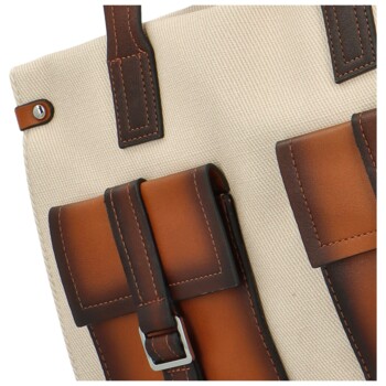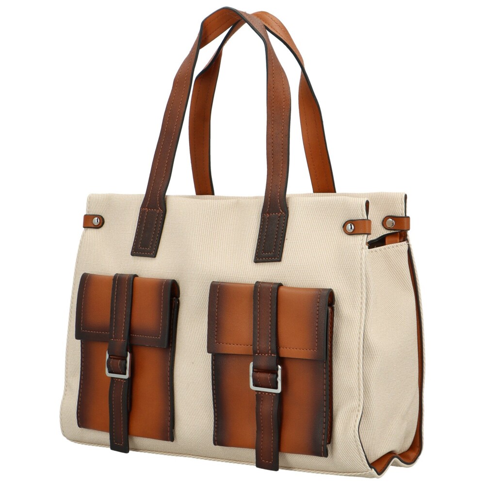 Moderná krémová kabelka od Maria C, praktická a odolná, vhodná na každodenné nosenie. Na prednej strane vás zaujmú dve vrecká s chlopňami, ktoré sa zapínajú na magnetické cvoky, okrasné pracky zdobia strieborné prvky. Uši sú pevné a dopĺňa ich jemné prešitie. Sú dostatočne dlhé na nosenie cez rameno. Hlavné vrecko je na zips a vo vnútri je stredové zipsové vrecko, ktoré priestor rozdeľuje. Všetko si krásne rozvrhnete aj vďaka menším kapsičkám v podšívke. Na bočných stranách kabelky je drobný detail v podobe malých pásikov s kovovými cvočkami. Zadný diel ponúka menšie zipsové vrecko. Ku kabelke ju aj dlhý koženkový popruh s nastaviteľnou dĺžkou, na nosenie do kríža. Objednajte ešte dnes a vyskúšajte! Vrátiť ju môžete až do 30 dní!