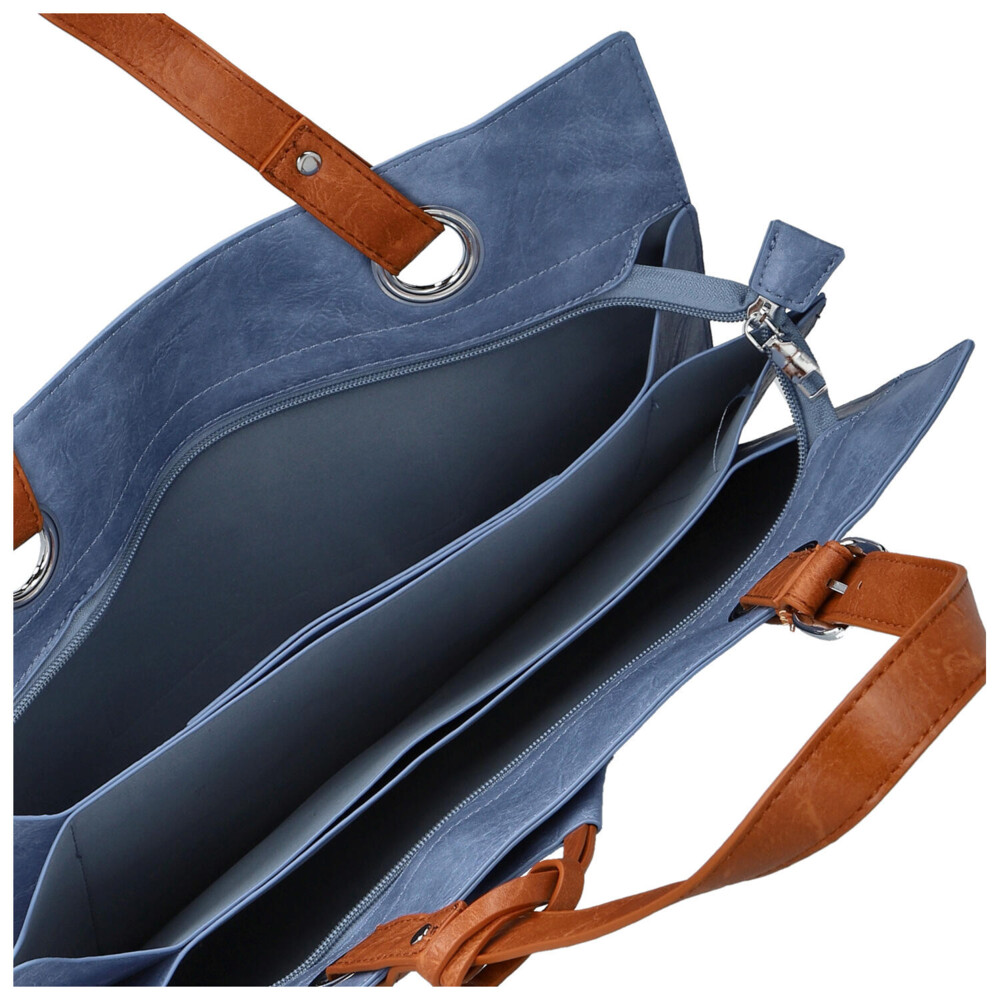 Objednajte ešte dnes a vyskúšajte, vrátiť ju môžete až za 30 dní! Moderná väčšia kabelka cez rameno, od značky Firenze, sa stane skvelým jarným doplnkom vášho outfitu. Modrá taška do mesta alebo do práce. Obdĺžniková kabelka s hlavným vreckom na zips. Vnútorný priestor pre osobné veci je rozdelený prepážkami a vznikajú tak tri voľné vrecká. Dlhé uši kabelky disponujú nastaviteľnou dĺžkou a bonusom je prívesok vo from malej kapsičky so zipsom.