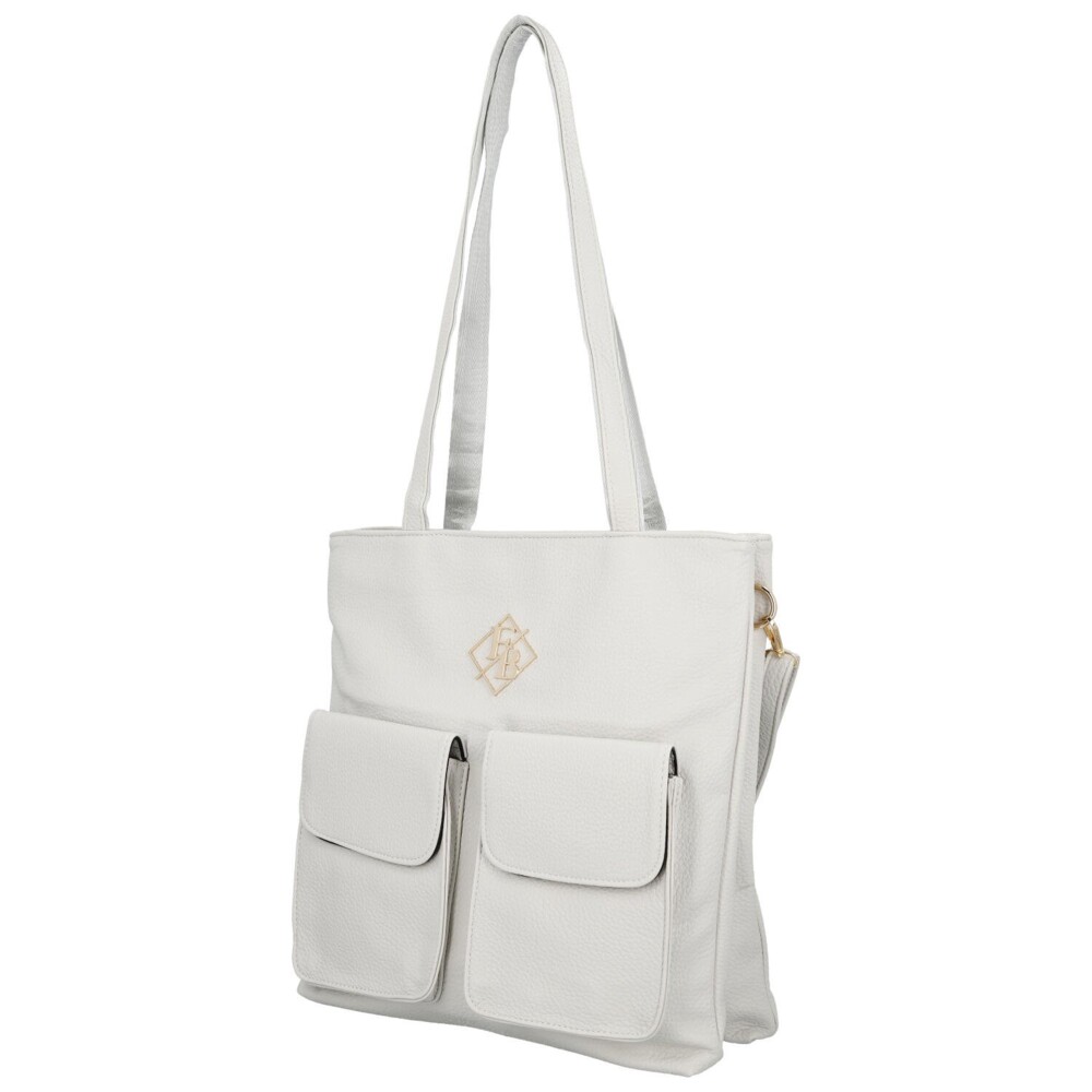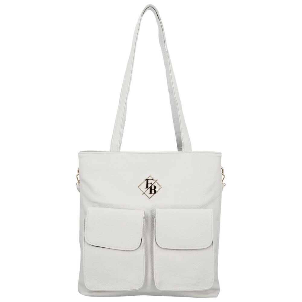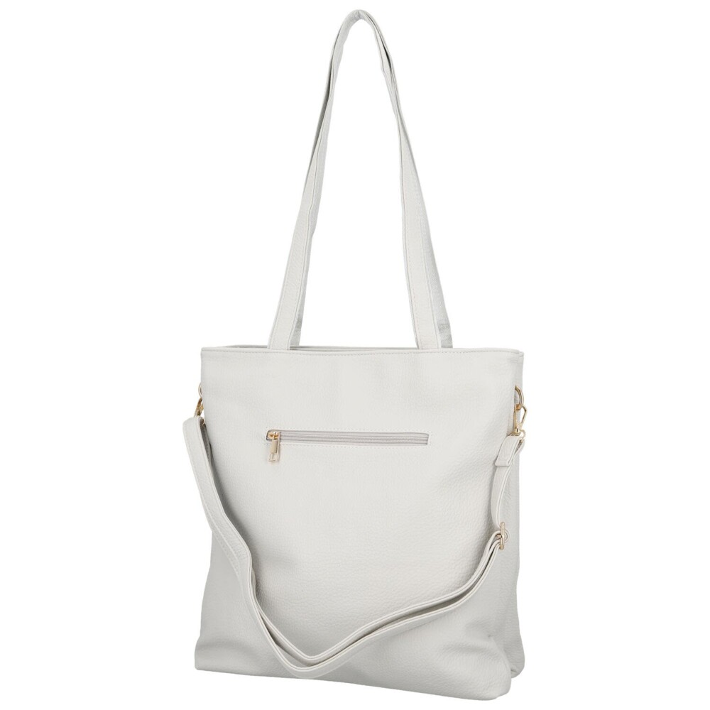 Priestranná dámska kabelka na rameno z kvalitnej koženky je skvelou voľbou pre ženy, ktoré hľadajú štýlový doplnok s dostatkom miesta. Prednú stranu zdobí elegantné logo značky a dve výrazné vypuklé vrecká s chlopňou, ktoré dodávajú kabelke moderný a originálny vzhľad. Model ponúka dve samostatné hlavné vrecká so zapínaním na zips, vďaka ktorým budete mať svoje veci prehľadne usporiadané. Vnútri nechýbajú praktické vrecká v podšívke na uloženie drobností. Na zadnej strane je umiestnené zipsové vrecko. Dlhé uši zaisťujú pohodlné nosenie na ramene, zatiaľ čo prídavný nastaviteľný popruh umožní nosenie cez rameno alebo crossbody. Zlaté kovanie elegantne podčiarkuje celkový dizajn tejto kabelky, ktorá sa stane štýlovým a praktickým spoločníkom na každý deň. Objednajte ešte dnes a vyskúšajte, vrátiť ju môžete do 30 dní!
