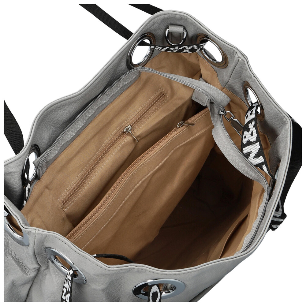 Stredne veľká dámska shopper kabelka v modernom dizajne s hlavným vreckom na zips. Objednajte ešte dnes a vyskúšajte, vrátiť ju môžete až za 30 dní! Kabelka nie je len doplnok. Je to váš každodenný spoločník, ktorý vás sprevádza na cestách, v práci aj pri stretnutiach s priateľmi. Vyberte si model, ktorý vystihne vašu osobnosť – jemný, výrazný, elegantný a zároveň ležérny. Šedá kabelka cez rameno Firenze. Ponúkne dostatočný priestor na všetky osobné veci i ďalšie potreby ako sú knihy, diár, notebook, šál, občerstvenie. Dlhé uši sú z polyesteru a prostredné časti sú polstrované syntetickou kožou, bude sa vám tak nosiť pohodlne v ruke aj cez rameno. Vnútorná časť je rozdelená priehradkou so zipsom. Samozrejmosťou sú malé vrecká na kozmetiku, telefón a ďalšie drobnosti.