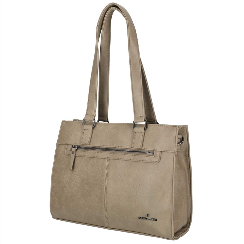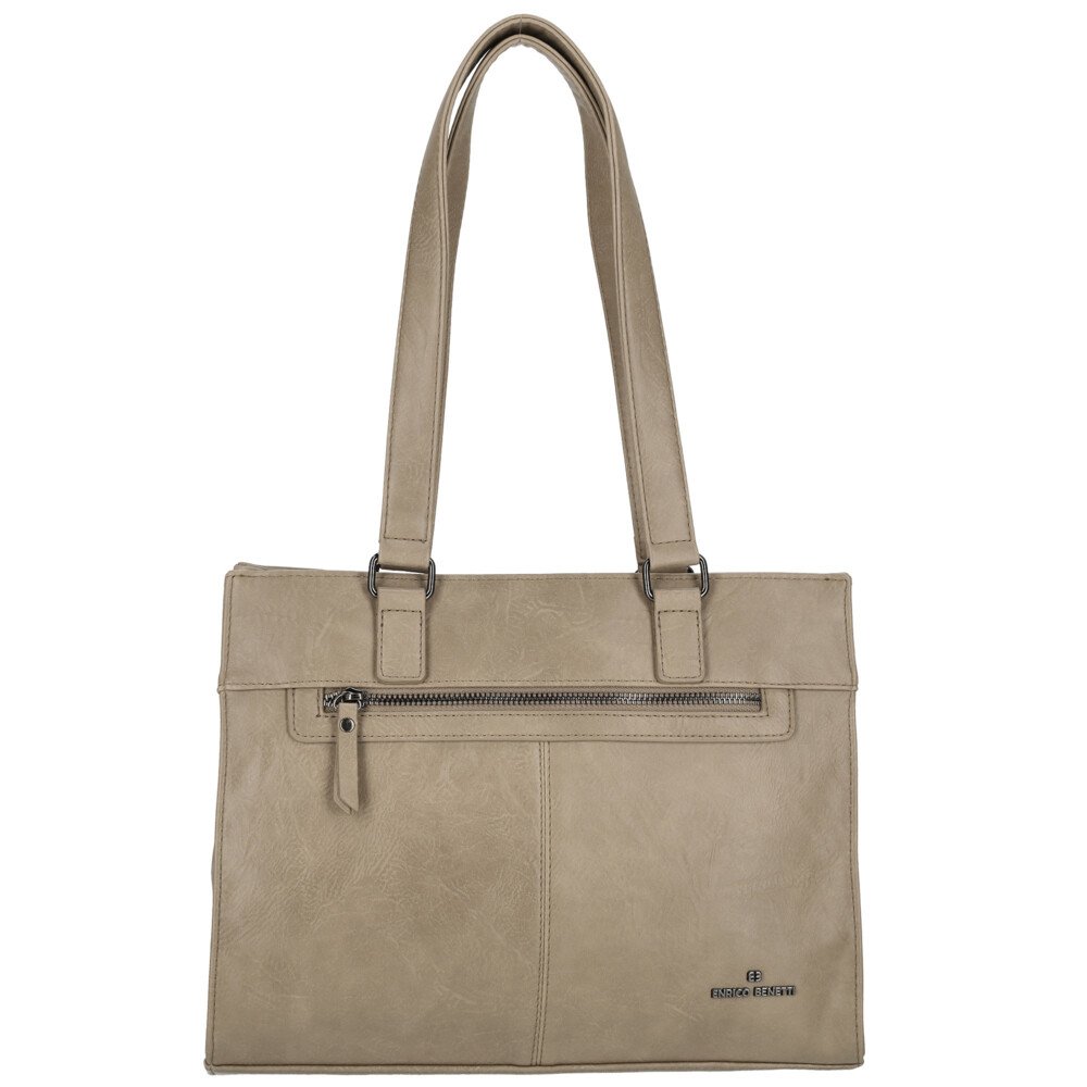 Módna a elegantná syntetická kabelka značky Enrico Benetti skvele doplní Váš každodenný outfit. Objednajte ešte dnes a vyskúšajte, vrátiť ju môžete až za 30 dní! Kabelku je možné nosiť klasicky cez rameno za dlhšie uši, ale aj s popruhom. Predná strana je vkusne prešívaná a nájdete tu malé vrecko na zips. Hlavné vrecko rozopnete pomocou zipsu. Vnútri je veľký priestor v podobe dvoch hlavných voľných priehradiek a jedného vrecka so zipsom. Samozrejmosťou sú malé vrecká na drobnosti a cennosti a vrecko so zipsom na zadnej strane kabelky.
