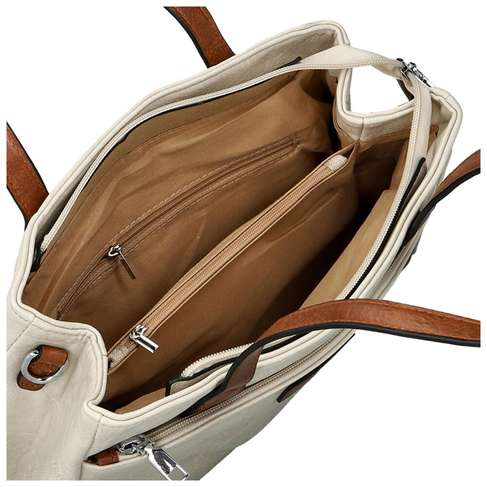 Pohodlná dámska kabelka cez rameno, značky Firenze, vo svetlo béžovej farbe. Top kúsok do mesta aj na cesty do práce. Uložíte si tu všetky osobné veci a navyše budete mať všetko prehľadne, pretože kabelka pod hlavným vreckom so zipsom ponúka dva hlavné priestory, ktoré sú od seba oddelené prepážkou vo forme vrecka so zipsom. Chýbať vám nebudú ani kapsičky na telefón, kozmetiku alebo drobnosti. Mäkká kabelka s dlhým uchom je elegantná a vkusná. Objednajte ešte dnes a vyskúšajte, vrátiť ju môžete až za 30 dní!