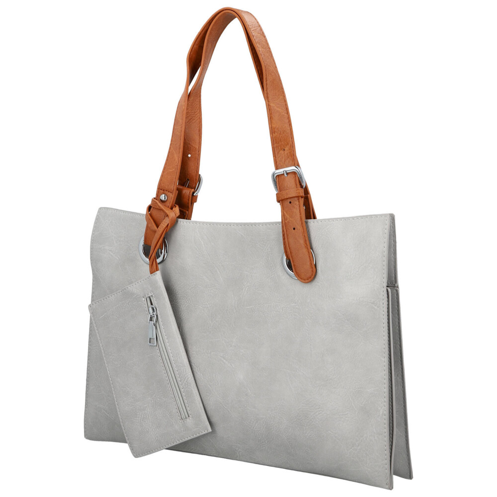Objednajte ešte dnes a vyskúšajte, vrátiť ju môžete až za 30 dní! Moderná väčšia kabelka cez rameno, od značky Firenze, sa stane skvelým jarným doplnkom vášho outfitu. Svetlosivá taška do mesta alebo do práce. Obdĺžniková kabelka s hlavným vreckom na zips. Vnútorný priestor pre osobné veci je rozdelený prepážkami a vznikajú tak tri voľné vrecká. Dlhé uši kabelky disponujú nastaviteľnou dĺžkou a bonusom je prívesok vo from malej kapsičky so zipsom.
