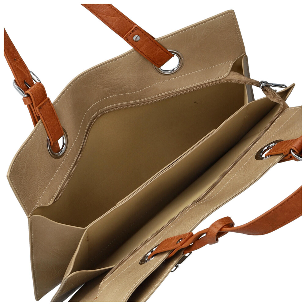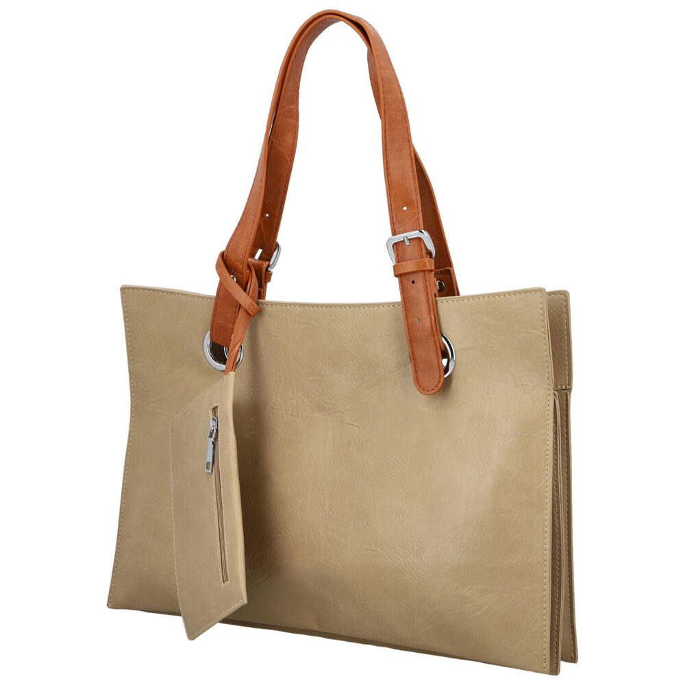 Objednajte ešte dnes a vyskúšajte, vrátiť ju môžete až za 30 dní! Moderná väčšia kabelka cez rameno, od značky Firenze, sa stane skvelým jarným doplnkom vášho outfitu. Tmavo béžová taška do mesta alebo do práce. Obdĺžniková kabelka s hlavným vreckom na zips. Vnútorný priestor pre osobné veci je rozdelený prepážkami a vznikajú tak tri voľné vrecká. Dlhé uši kabelky disponujú nastaviteľnou dĺžkou a bonusom je prívesok vo from malej kapsičky so zipsom.