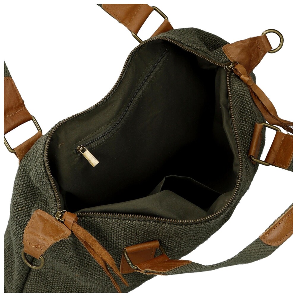Ležérny štýl s nádychom prírodnej elegancie. Táto textilná kabelka zaujme svojou jednoduchosťou a harmonickou kombináciou farebného materiálu s hnedými detailmi, ktoré jej dodávajú teplý a nadčasový vzhľad. Pevné textilné uši zaisťujú pohodlné nosenie v ruke aj na ramene, zatiaľ čo dlhý nastaviteľný popruh na pripnutie umožňuje nosiť kabelku aj ako crossbody. Hlavné vrecko na zips ukrýva priestranný interiér s praktickými vreckami v podšívke. Jemné hnedé prvky krásne dopĺňajú celkový dizajn a dodávajú kabelke štýlový, prirodzený šmrnc. Ľahká, praktická a vždy pripravená vyraziť s vami! Objednajte ešte dnes a vyskúšajte, vrátiť ju môžete až za 30 dní!