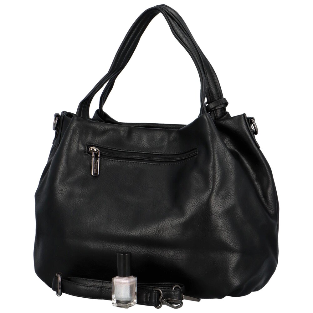 Štýlová čierna dámska kabelka na každodenné nosenie, od Coveri. Po otvorení hlavného vrecka, ktoré je na zips, sa vám ponúka dostatočný priestor pre vaše veci. Kabelka má vo vnútri stredové rozdeľovacie vrecko na zips z podšívky. Vnútri sú aj bočné vrecká, z ktorých jedno je na zips. V zadnej časti kabelky je tiež vrecko na zips. Na prednej strane je logo značky a strapcový prívesok, ktorý sa dá odopnúť. Kabelka je ušitá z príjemnej, mäkkej syntetickej kože. Dá sa nosiť v ruke, ale aj cez rameno vďaka prídavnému dlhému popruhu. Kovanie je v mosadznej farbe. Praktická a pritom štýlová. Tak objednajte ešte dnes a vyskúšajte! Vrátiť ju môžete do 30 dní.
