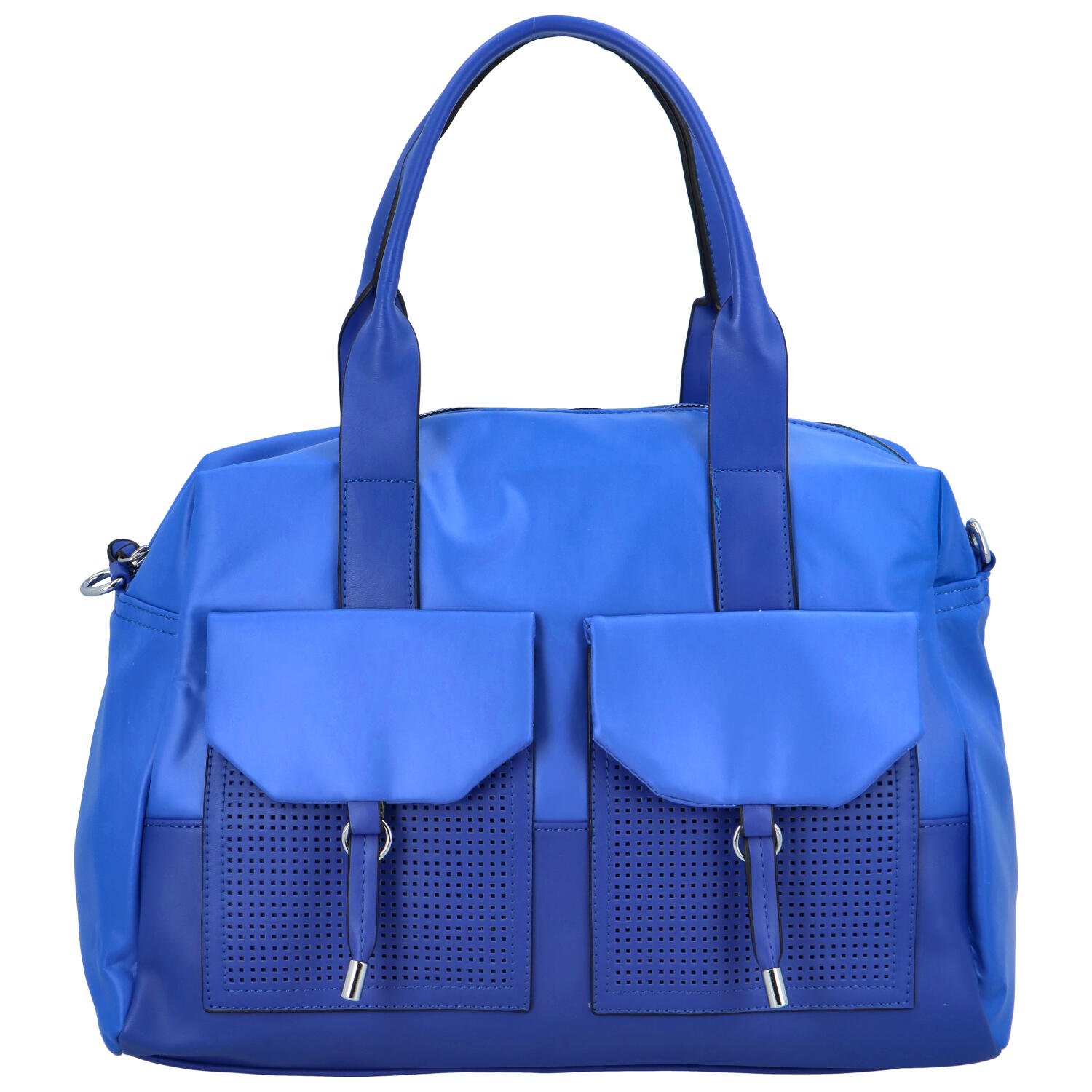Štýlová väčšia kabelka, alebo menšia víkendová taška. Skvelý kúsok z príjemnej koženky, ktorý vás zaujme. Prednú stranu zdobia výrazné vrecká, ktoré sú zároveň neskutočne praktické. Kombinácia koženky dodáva celému kúsku osobitý vzhľad. Do hlavného vrecka pohodlne vložíte svoje veci. Je tam aj množstvo vrecúšok vrátane zipsových, všetko tak máte prehľadne roztriedené. V zadnej časti, tiež zipsové vrecko. Taška je tak ideálna pre víkendové pobyty, alebo napríklad do telocvične, pokiaľ potrebujete zladiť svoj outfit. K dispozícii je vám tiež pripínací popruh na rameno, alebo tašku pohodlne noste v ruke. Objednajte ešte dnes a vyskúšajte, vrátiť ju môžete až za 30 dní!