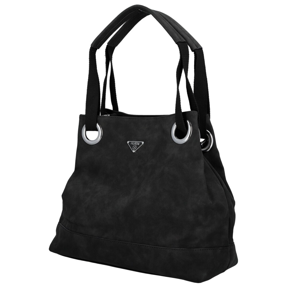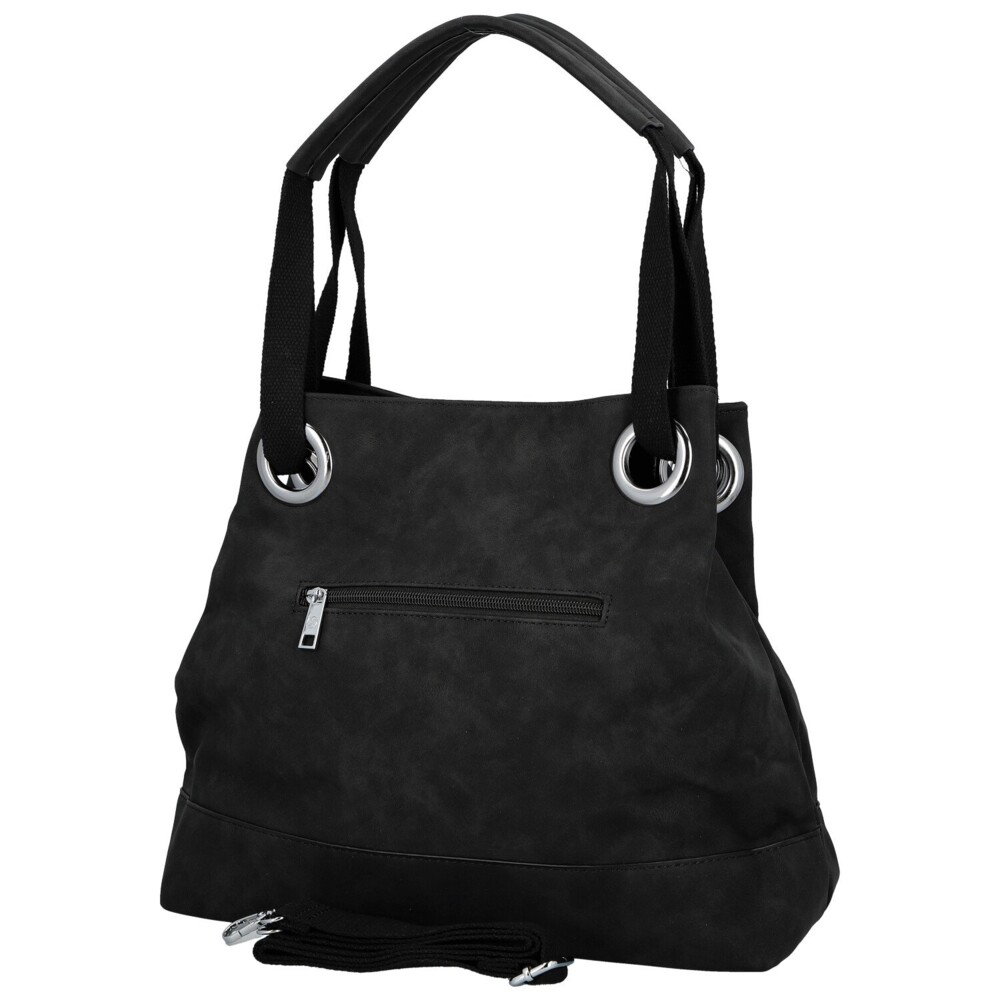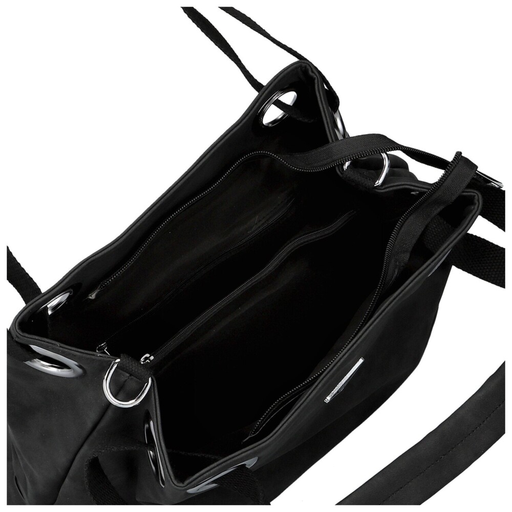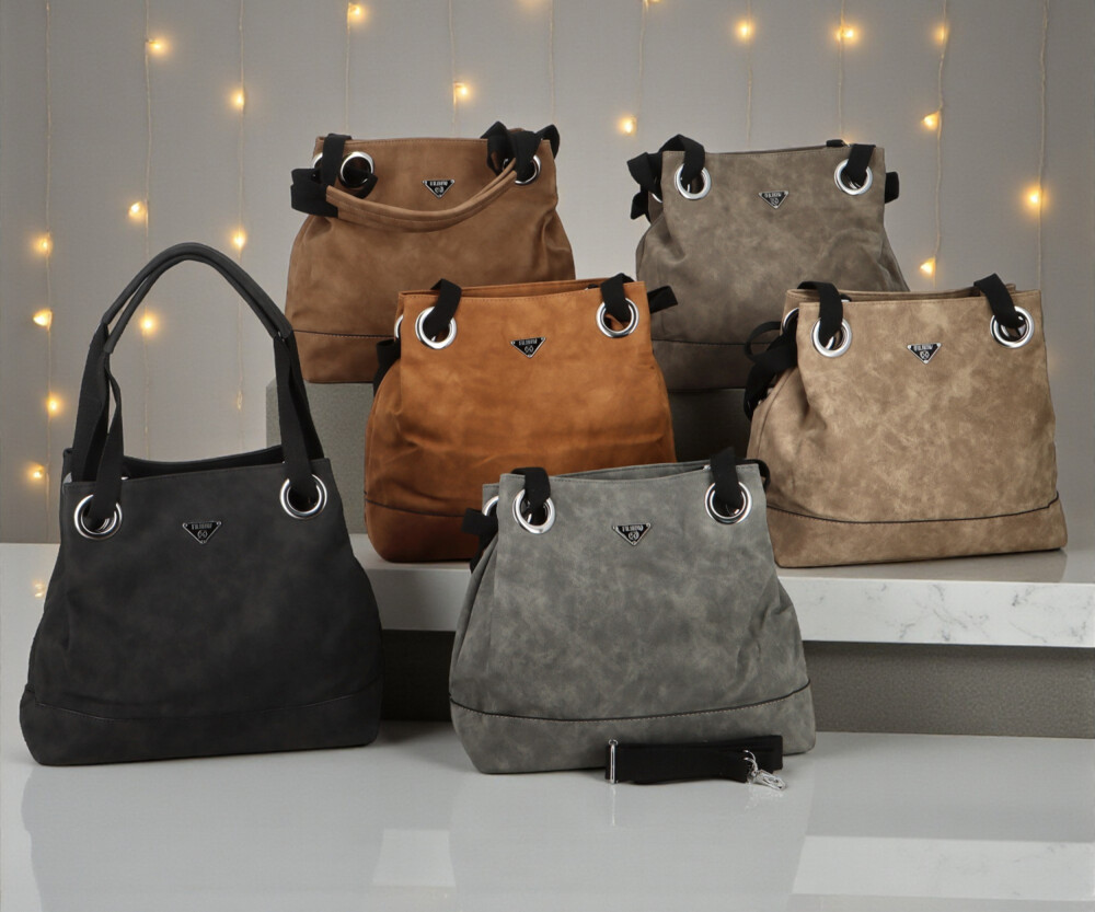 Táto dámska koženková kabelka zaujme na prvý pohľad svojim mäkkým tvarom a elegantne ležérnym vzhľadom. Na prednej strane nechýba decentné kovové logo, ktoré spolu so striebornými očkami vytvára výrazný, ale stále vkusný detail. Široké textilné uši prechádzajú veľkými kovovými prievlakmi, vďaka čomu kabelka krásne padne na rameno a zároveň získava zaujímavý dizajnový prvok. Na zadnej strane je ukryté praktické zipsové vrecko. Hlavné vrecko je zaistené zipsom a vo vnútri vás čaká prehľadné usporiadanie, vrecká v podšívke aj stredová zipsová časť. Pre maximálne pohodlie je tu navyše dlhý textilný popruh na pripnutie, vďaka ktorému môžete kabelku nosiť aj ako crossbody. Strieborné kovanie krásne doladí jej svieži, moderný vzhľad. Objednajte ešte dnes a vyskúšajte, vrátiť ju môžete až do 30 dní!