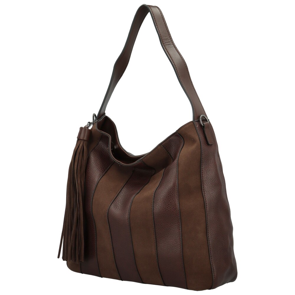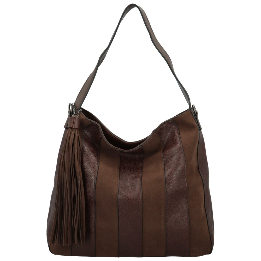 Štýlová dámska kabelka, ktorá v sebe spája eleganciu aj praktickosť. Predná strana je ozdobená zvislými pruhmi v dvoch odtieňoch, čo jej dodáva moderný a zaujímavý vzhľad. Na pevnom uchu je zavesený výrazný strapec, ktorý pôsobí ako originálny detail. Hlavný priestor kabelky je uzatvárateľný zipsom a vo vnútri ponúka vrecká v podšívke a praktické stredové zipsové vrecko. Zadnú časť dopĺňa zipsové vrecko na drobnosti. Kabelku je možné nosiť ako v ruke alebo na ramene, tak aj pohodlne cez telo vďaka prídavnému dlhému popruhu. Objednajte ešte dnes a vyskúšajte, vrátiť ju môžete až do 30 dní!