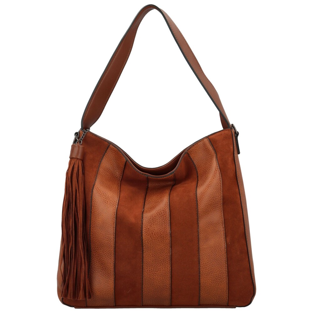 Štýlová dámska kabelka, ktorá v sebe spája eleganciu aj praktickosť. Predná strana je ozdobená zvislými pruhmi v dvoch odtieňoch, čo jej dodáva moderný a zaujímavý vzhľad. Na pevnom uchu je zavesený výrazný strapec, ktorý pôsobí ako originálny detail. Hlavný priestor kabelky je uzatvárateľný zipsom a vo vnútri ponúka vrecká v podšívke a praktické stredové zipsové vrecko. Zadnú časť dopĺňa zipsové vrecko na drobnosti. Kabelku je možné nosiť ako v ruke alebo na ramene, tak aj pohodlne cez telo vďaka prídavnému dlhému popruhu. Objednajte ešte dnes a vyskúšajte, vrátiť ju môžete až do 30 dní!