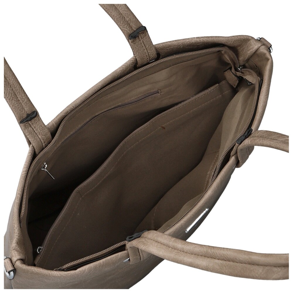 Táto dámska koženková kabelka je dôkazom, že jednoduchosť môže byť najsilnejším štýlom. Hladký povrch pôsobí elegantne a nadčasovo, zatiaľ čo na prednej strane jemne žiari strieborné logo. Dlhé uchá sú navrhnuté tak, aby pohodlne sedeli na ramene aj pri celodennom nosení. Po rozopnutí hlavného zipsu sa otvorí premyslene členený interiér s podšívkou, nechýbajú menšie vrecká na drobnosti ani stredová priehradka, ktorá udržuje veci perfektne usporiadané. Na zadnej strane nájdete ďalšie zipsové vrecko. A keď budete chcieť mať voľné ruky, jednoducho pripnete dlhý popruh a premeníte kabelku na pohodlnú crossbody variantu. Strieborné kovanie krásne dopĺňa jej moderný vzhľad a dodáva jej jemný, sofistikovaný ligot. Objednajte ešte dnes a vyskúšajte, vrátiť ju môžete až do 30 dní!
