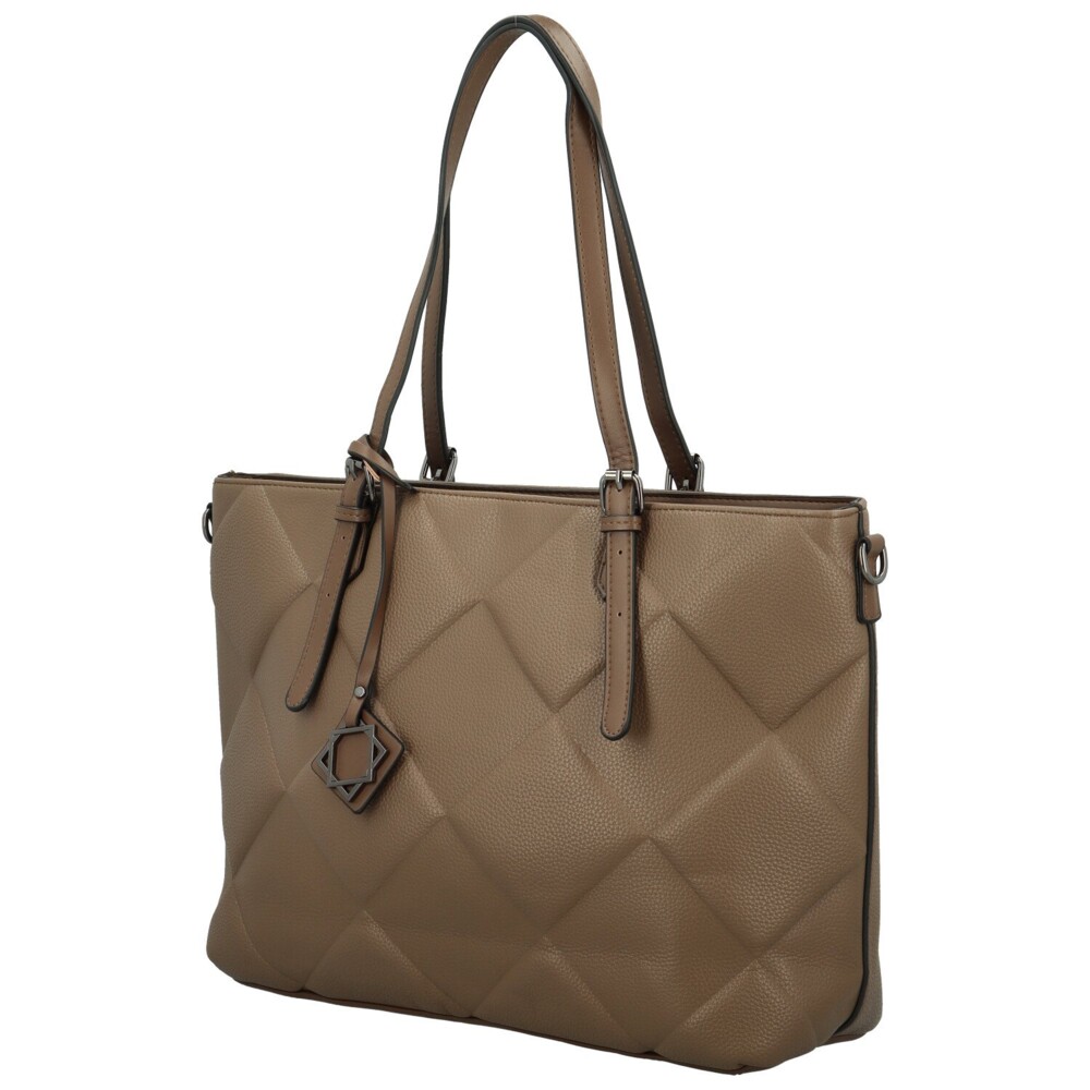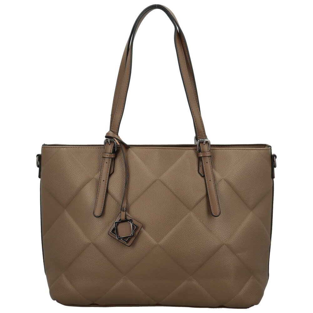 Táto väčšia koženková kabelka je stvorená pre ženy, ktoré chcú mať štýl a zároveň dostatok priestoru pre všetky svoje veci. Prednú stranu zdobí originálny detail, jemne vytlačený štvorcový vzor, ktorý pôsobí decentne, ale pritom jedinečne. Eleganciu dopĺňa dizajnový prívesok, ktorý kabelke dodáva šmrnc. Dlhé uši sú vybavené prackami v tmavo striebornej farbe, takže si ich dĺžku ľahko prispôsobíte. Zadná časť ponúka praktické zipsové vrecko na drobnosti. Hlavný priestor sa uzatvára zipsom a ukrýva vrecká v podšívke aj stredové zipsové vrecko pre lepší prehľad. A keď sa vám zachce voľnosti, stačí pripnúť nastaviteľný dlhý popruh a kabelku pohodlne nosiť aj crossbody. Jeden kúsok, veľa možností. Objednajte ešte dnes a vyskúšajte, vrátiť ju môžete až do 30 dní!