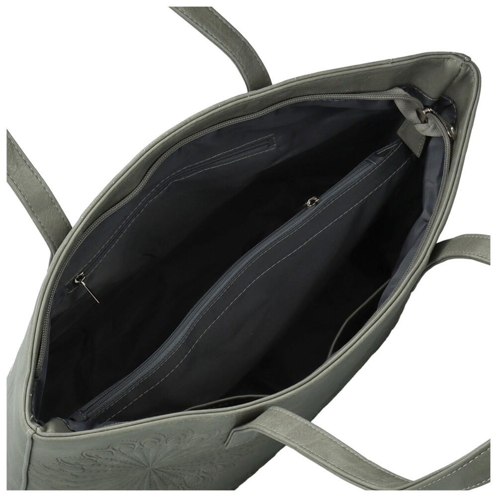 Táto veľká kabelka z jemnej koženky je stelesnením jednoduchej elegancie s dotykom originality. Prednú stranu zdobia nádherné vyšívané kvetinové motívy, ktoré pôsobia plasticky a dodávajú kabelke jedinečný, ženský charakter. Vďaka dlhým uchom ju môžete pohodlne nosiť cez rameno aj v ruke. Hlavné vrecko na zips ukrýva priestranný interiér so stredovým zipsovým vreckom, ktoré delí priestor na dve časti, a menšie vrecká v podšívke pre prehľadné usporiadanie všetkých drobností. Strieborné kovanie podčiarkuje jej moderný vzhľad a dokonale ladí s decentnou farbou kabelky. Štýlová, praktická as nádychom originality. Objednajte ešte dnes a vyskúšajte, vrátiť ju môžete až do 30 dní!