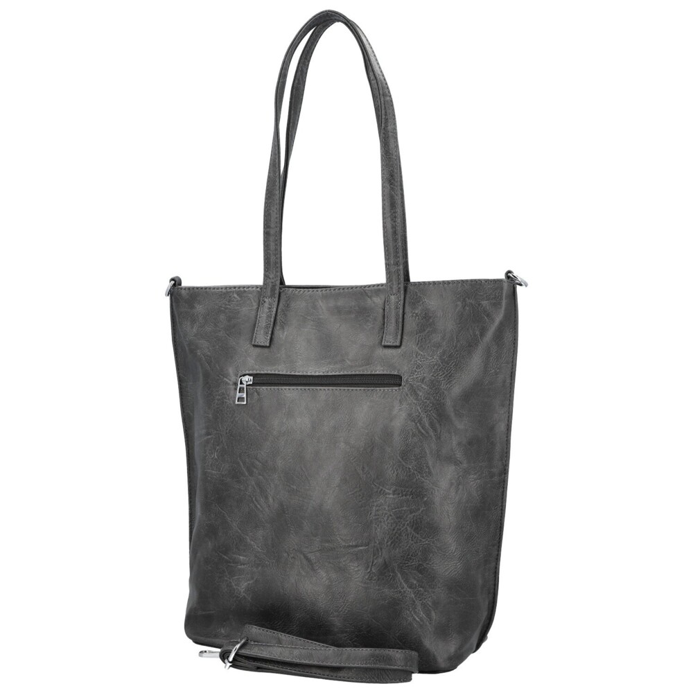 Veľká koženková kabelka na rameno, ktorá spája praktickosť s moderným designom. Prednú časť zdobí jemné logo značky, zadná strana ponúka diskrétne zipsové vrecko pre drobné veci. Hlavné vrecko na zips poskytuje priestranný interiér, vo vnútri nájdete menšie vrecká v podšívke a jedno väčšie zipsové vrecko pre lepšiu organizáciu. Kabelku dopĺňajú dlhé uši na rameno a prídavný nastaviteľný popruh pre pohodlné nosenie, všetko s elegantným strieborným kovaním. Perfektný spoločník do práce aj na voľný čas. Objednajte ešte dnes a vyskúšajte, vrátiť ju môžete až do 30 dní!