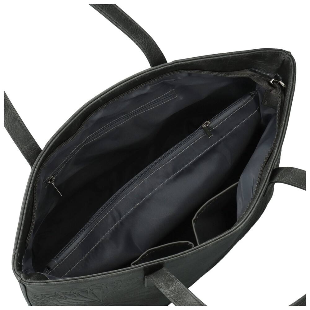 Táto veľká kabelka z jemnej koženky je stelesnením jednoduchej elegancie s dotykom originality. Prednú stranu zdobia nádherné vyšívané kvetinové motívy, ktoré pôsobia plasticky a dodávajú kabelke jedinečný, ženský charakter. Vďaka dlhým uchom ju môžete pohodlne nosiť cez rameno aj v ruke. Hlavné vrecko na zips ukrýva priestranný interiér so stredovým zipsovým vreckom, ktoré delí priestor na dve časti, a menšie vrecká v podšívke pre prehľadné usporiadanie všetkých drobností. Strieborné kovanie podčiarkuje jej moderný vzhľad a dokonale ladí s decentnou farbou kabelky. Štýlová, praktická as nádychom originality. Objednajte ešte dnes a vyskúšajte, vrátiť ju môžete až do 30 dní!