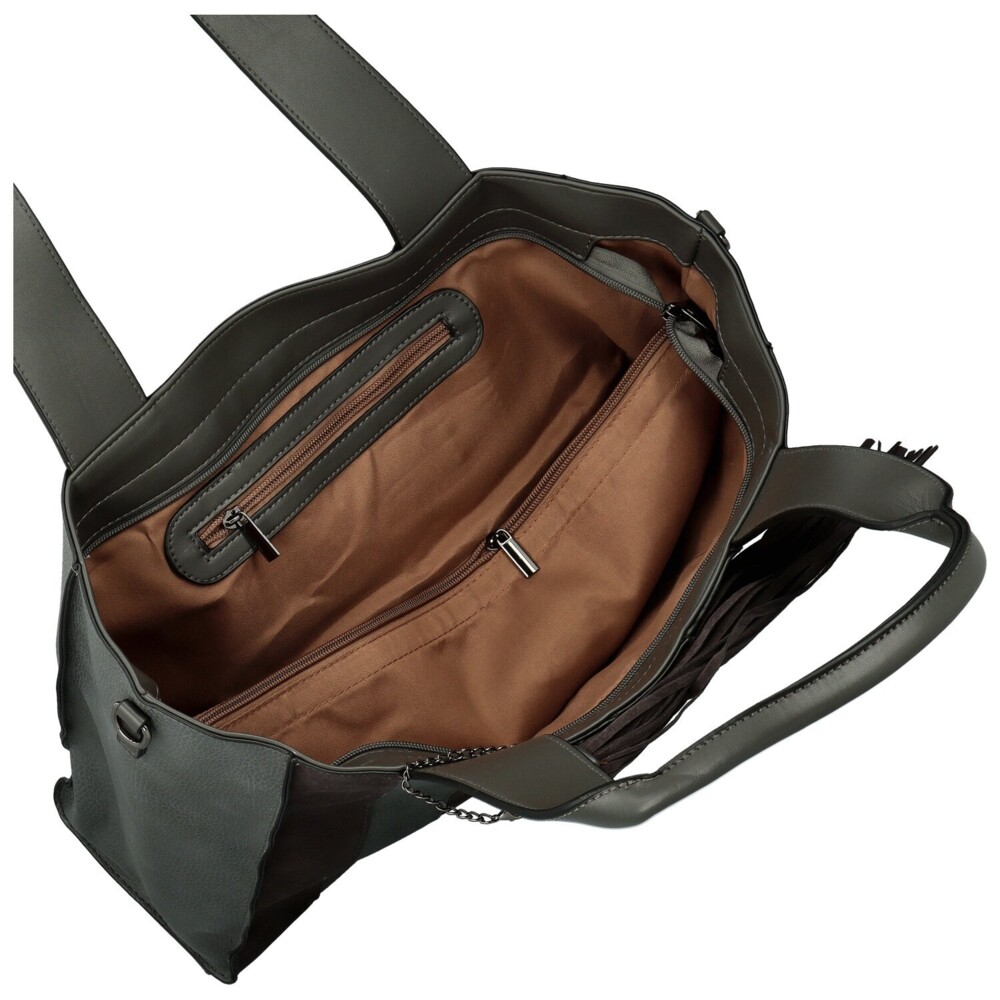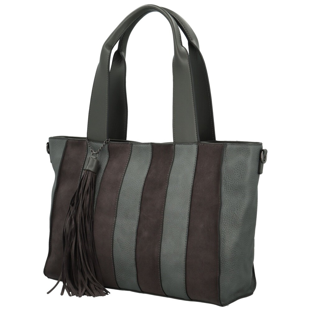 Štýlová dámska kabelka z koženky, ktorá spája eleganciu s praktickým využitím. Predná strana je riešená dizajnovo, zdobia ju zvislé pruhy v dvoch odtieňoch, ktoré pôsobia sviežo a originálne. Na uchu visí výrazný strapec, ktorý dodáva kabelke ležérny nádych. Pevné uši sú navrhnuté tak, aby kabelka pohodlne sedela na ramene. Hlavné vrecko na zips skrýva veľké stredové zipsové vrecko a praktické priehradky v podšívke, takže všetko zostane prehľadne usporiadané. Na zadnej strane sa nachádza zipsové vrecko na drobnosti. Pre väčšiu variabilitu môžete využiť aj dlhý nastaviteľný popruh a nosiť kabelku pohodlne cez telo. Objednajte ešte dnes a vyskúšajte, vrátiť ju môžete až do 30 dní!