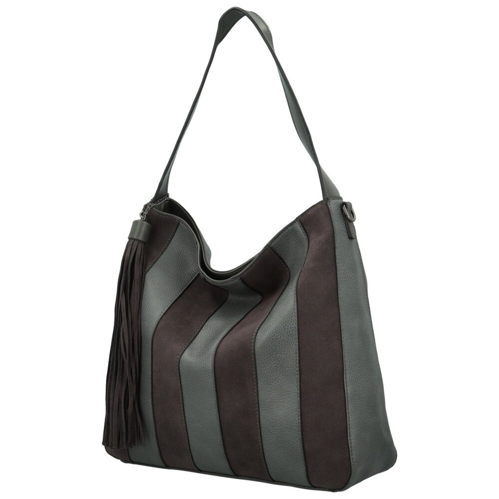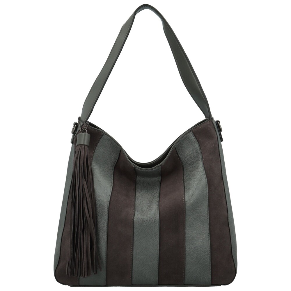 Štýlová dámska kabelka, ktorá v sebe spája eleganciu aj praktickosť. Predná strana je ozdobená zvislými pruhmi v dvoch odtieňoch, čo jej dodáva moderný a zaujímavý vzhľad. Na pevnom uchu je zavesený výrazný strapec, ktorý pôsobí ako originálny detail. Hlavný priestor kabelky je uzatvárateľný zipsom a vo vnútri ponúka vrecká v podšívke a praktické stredové zipsové vrecko. Zadnú časť dopĺňa zipsové vrecko na drobnosti. Kabelku je možné nosiť ako v ruke alebo na ramene, tak aj pohodlne cez telo vďaka prídavnému dlhému popruhu. Objednajte ešte dnes a vyskúšajte, vrátiť ju môžete až do 30 dní!