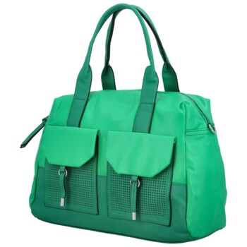 Štýlová väčšia kabelka, alebo menšia víkendová taška. Skvelý kúsok z príjemnej koženky, ktorý vás zaujme. Prednú stranu zdobia výrazné vrecká, ktoré sú zároveň neskutočne praktické. Kombinácia koženky dodáva celému kúsku osobitý vzhľad. Do hlavného vrecka pohodlne vložíte svoje veci. Je tam aj množstvo vrecúšok vrátane zipsových, všetko tak máte prehľadne roztriedené. V zadnej časti, tiež zipsové vrecko. Taška je tak ideálna pre víkendové pobyty, alebo napríklad do telocvične, pokiaľ potrebujete zladiť svoj outfit. K dispozícii je vám tiež pripínací popruh na rameno, alebo tašku pohodlne noste v ruke. Objednajte ešte dnes a vyskúšajte, vrátiť ju môžete až za 30 dní!