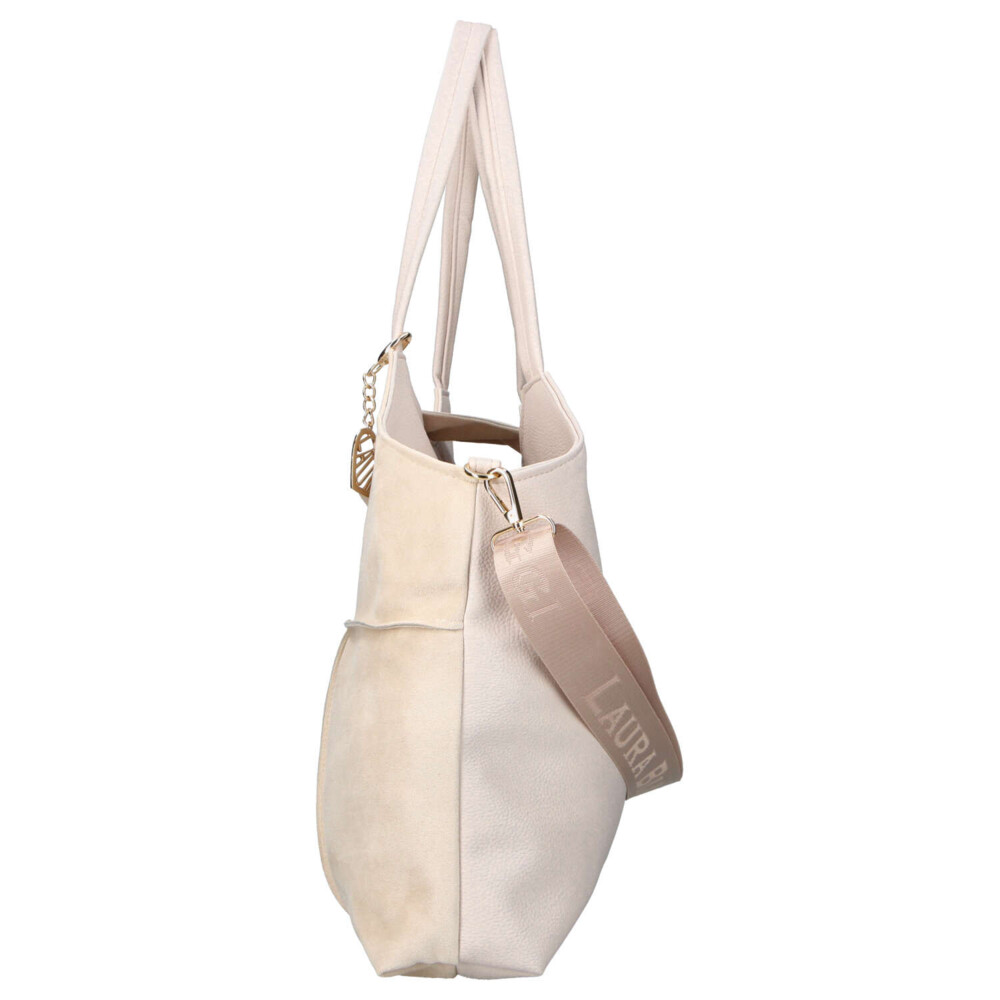 Dámska kožená kabelka cez rameno béžová - Laura Biaggi Sienna