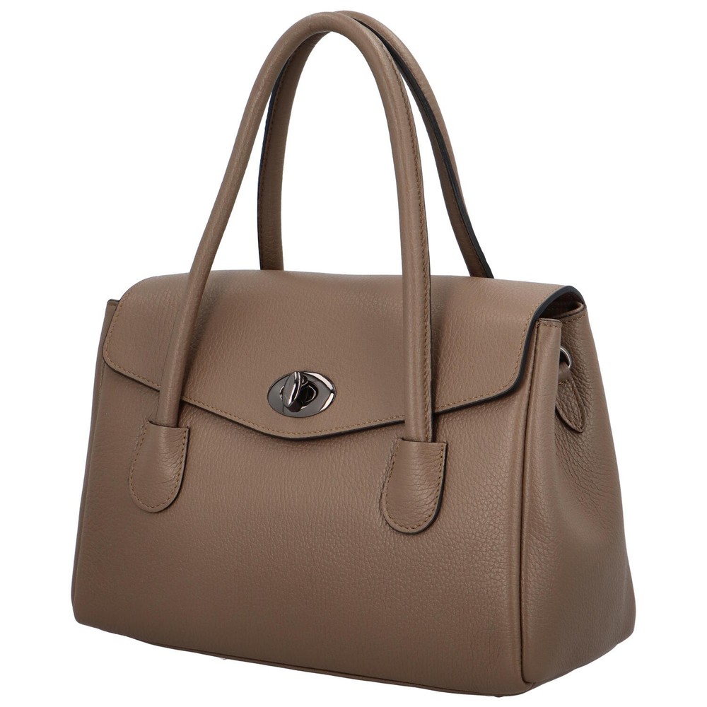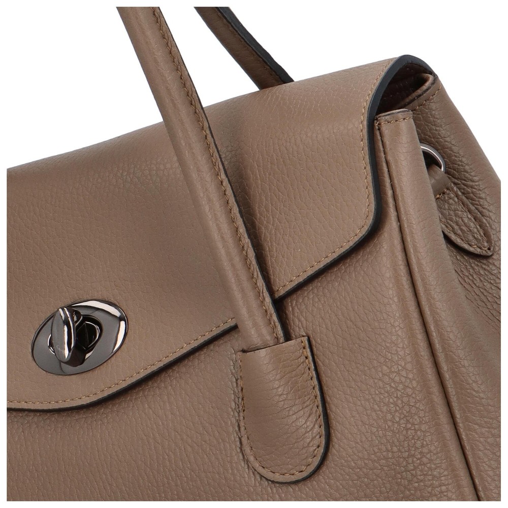 Originálna a krásna kožená kabelka pre ženy s vkusom, od značky Delami Vera Pelle . Objednajte ešte dnes a vyskúšajte, vrátiť ju môžete až za 30 dní! Ľahko štruktúrovanú kabelku je možné nosiť v ruke, na predlaktí alebo s popruhom cez rameno. Skvelý model, s ktorým sa zladíte do mesta aj do spoločnosti. Taupe kabelka sa otvára krátkou klopou pomocou otočného (360 °) kovového klipsu. Má pevnejšiu konštrukciu a na spodnej strane sú kovové cvočky. Hlavné vrecko je voľné, vo vnútri sú dva hlavné priestory, ktoré oddeľuje látkové vrecko na zips. Samozrejmosťou sú menšie vrecká na telefón a drobnosti.