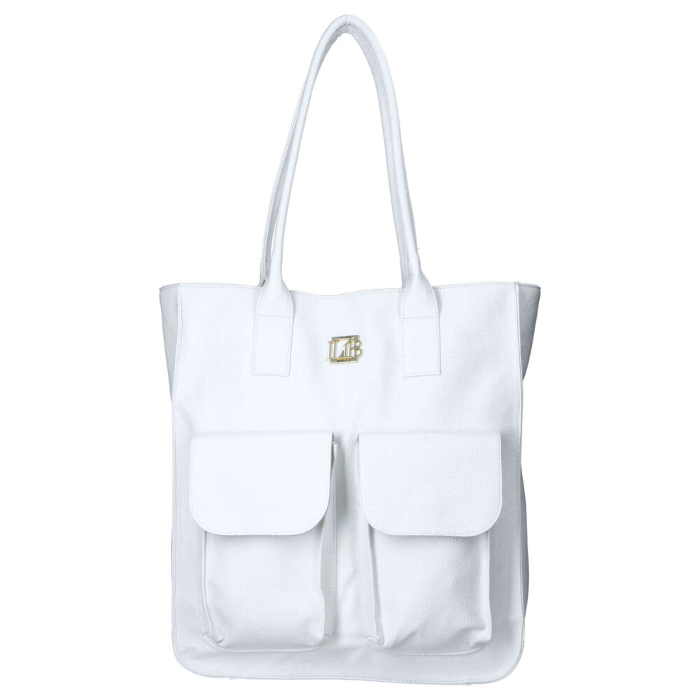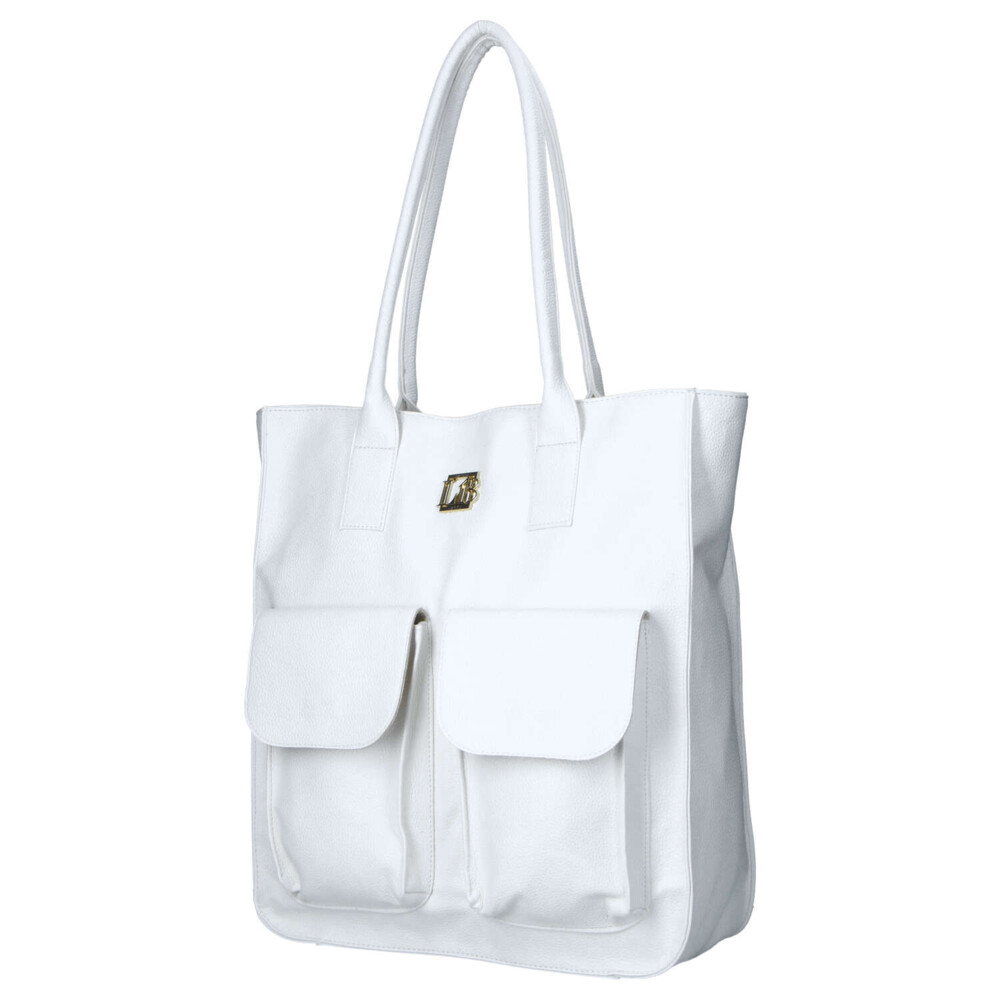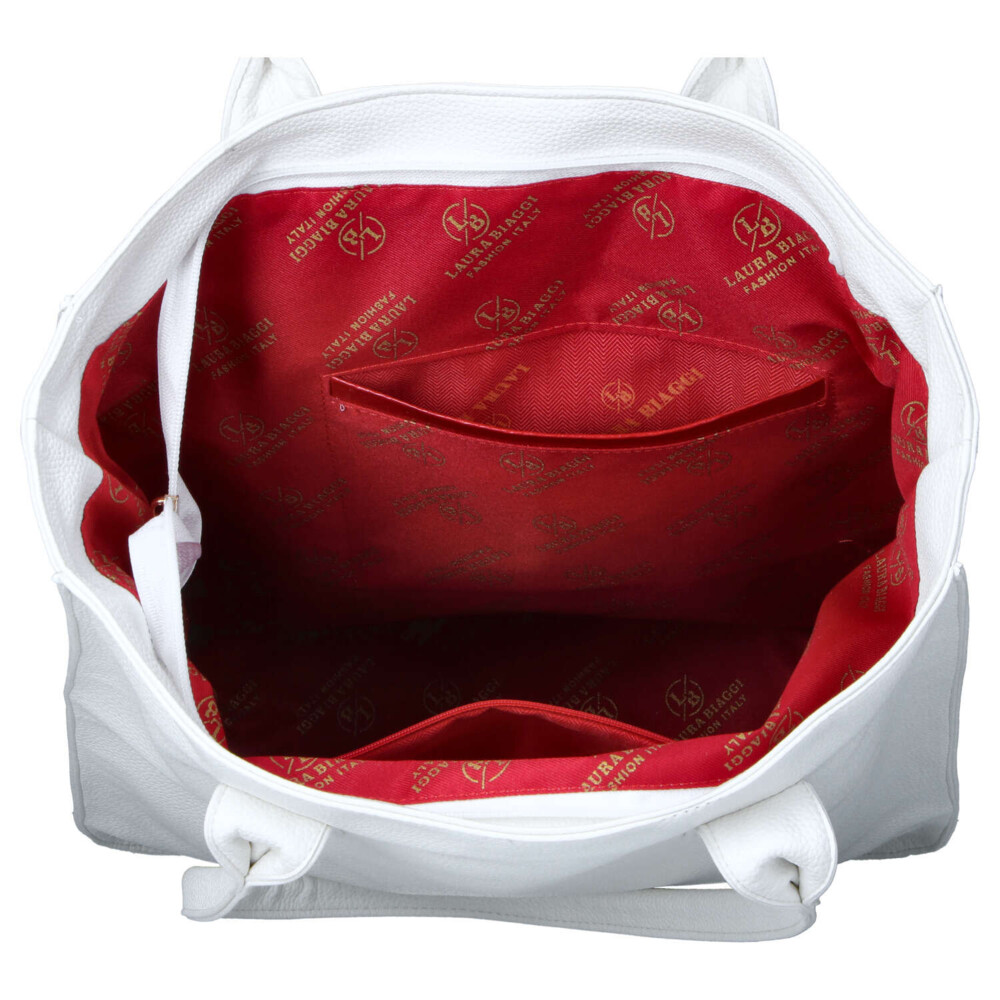 Dámska kožená shopper taška biela - Laura Biaggi Malia