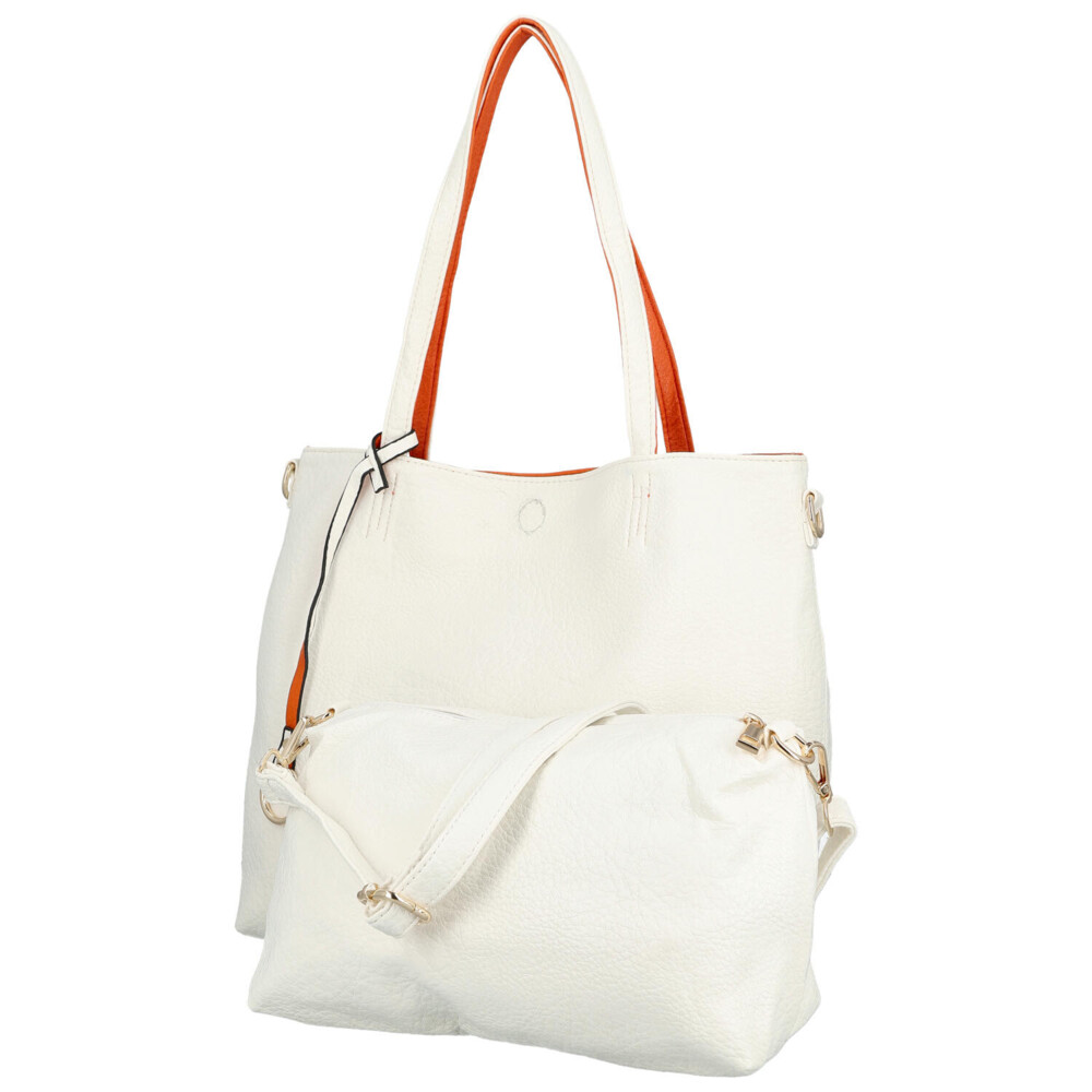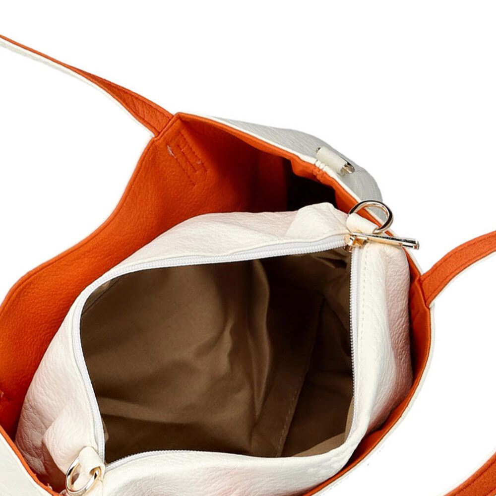 Objavte nadčasovú eleganciu inšpirovanú Talianskom. Dámska kabelka Firenze je ideálnou voľbou pre ženy, ktoré chcú byť štýlové a zároveň praktické. Dominantná biela shopper kabelka pôsobí luxusne a výrazne, zatiaľ čo menšia oranžová kabelka dodáva celku svieži kontrast. Vďaka tomu získavate univerzálny doplnok vhodný ako do mesta, tak do práce či na voľný čas a nákupy. Set 2v1 vám umožní variabilné nosenie - veľká kabelka cez rameno na každodenné nosenie a menšie crossbody na ľahké a rýchle pochôdzky. Dlhé uši pohodlne sedia na ramene a nastaviteľný popruh pri menšej kabelke umožňuje prispôsobenie presne podľa vašich potrieb. Hlavný priestor sa zopína magnetom, malá crossbody sa zapína zipsom. Odnímateľný popruh je možné pripnúť k obom kabelkám. Celkovo sú obe kabelky mäkké z ľahko vráskavej umelej kože. Objednajte ešte dnes a vyskúšajte, vrátiť ju môžete až za 30 dní! Tieto farby vás budú baviť!