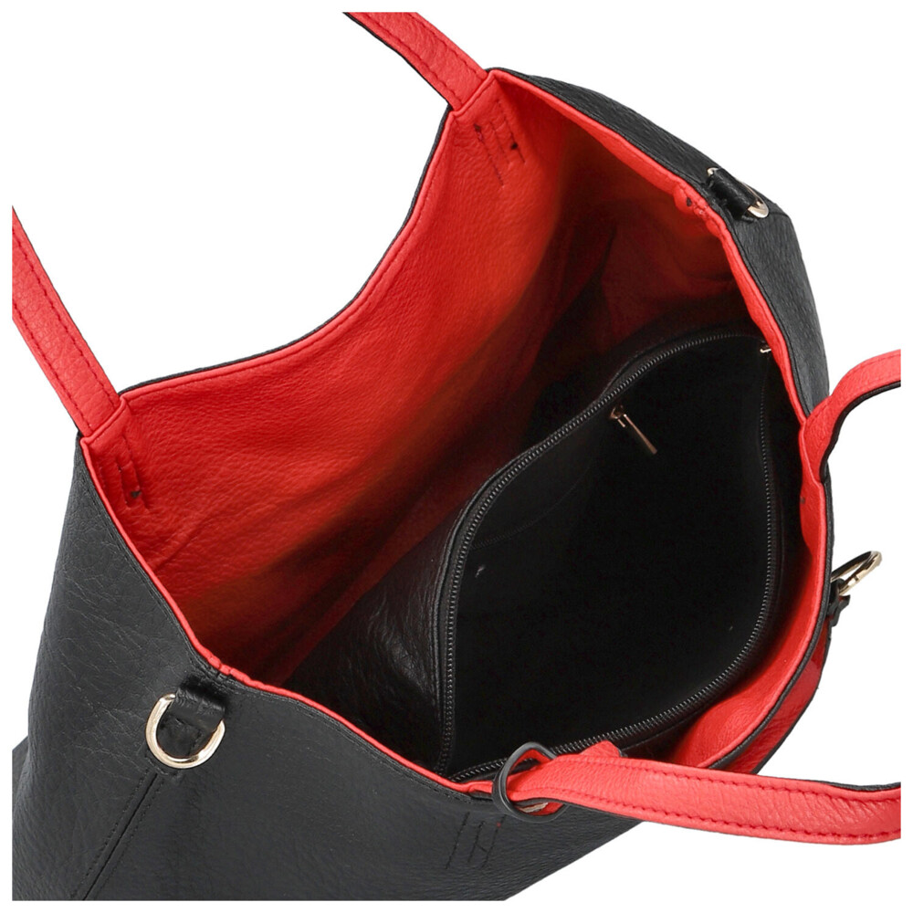 Objavte nadčasovú eleganciu inšpirovanú Talianskom. Dámska kabelka Firenze je ideálnou voľbou pre ženy, ktoré chcú byť štýlové a zároveň praktické. Dominantná čierna shopper kabelka s červenou protistranou pôsobí luxusne a výrazne. Vďaka tomu získavate univerzálny doplnok vhodný ako do mesta, tak do práce či na voľný čas a nákupy. Set 2v1 vám umožní variabilné nosenie - veľká kabelka cez rameno na každodenné nosenie a menšie crossbody na ľahké a rýchle pochôdzky. Dlhé uši pohodlne sedia na ramene a nastaviteľný popruh pri menšej kabelke umožňuje prispôsobenie presne podľa vašich potrieb. Hlavný priestor sa zopína magnetom, malá crossbody sa zapína zipsom. Odnímateľný popruh je možné pripnúť k obom kabelkám. Celkovo sú obe kabelky mäkké z ľahko vráskavej umelej kože. Objednajte ešte dnes a vyskúšajte, vrátiť ju môžete až za 30 dní! Tieto farby vás budú baviť!