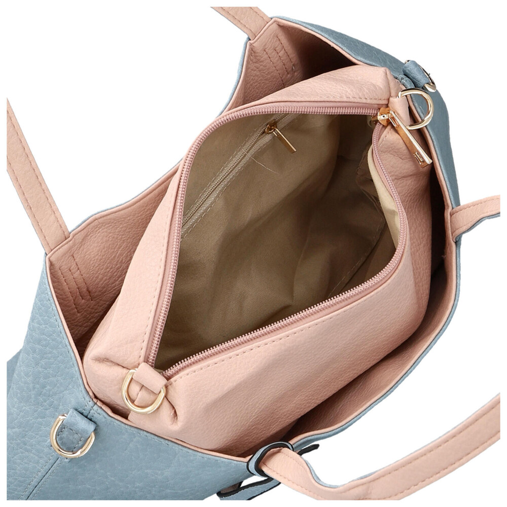 Objavte nadčasovú eleganciu inšpirovanú Talianskom. Dámska kabelka Firenze je ideálnou voľbou pre ženy, ktoré chcú byť štýlové a zároveň praktické. Dominantná džínsovo modrá shopper kabelka pôsobí luxusne a výrazne, zatiaľ čo menšia svetlo ružová kabelka dodáva celku svieži kontrast. Vďaka tomu získavate univerzálny doplnok vhodný ako do mesta, tak do práce či na voľný čas a nákupy. Set 2v1 vám umožní variabilné nosenie - veľká kabelka cez rameno na každodenné nosenie a menšie crossbody na ľahké a rýchle pochôdzky. Dlhé uši pohodlne sedia na ramene a nastaviteľný popruh pri menšej kabelke umožňuje prispôsobenie presne podľa vašich potrieb. Hlavný priestor sa zopína magnetom, malá crossbody sa zapína zipsom. Odnímateľný popruh je možné pripnúť k obom kabelkám. Celkovo sú obe kabelky mäkké z ľahko vráskavej umelej kože. Objednajte ešte dnes a vyskúšajte, vrátiť ju môžete až za 30 dní! Tieto farby vás budú baviť!