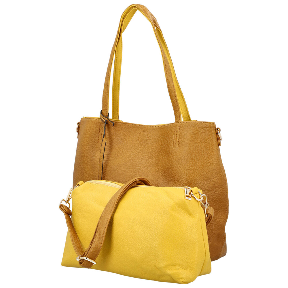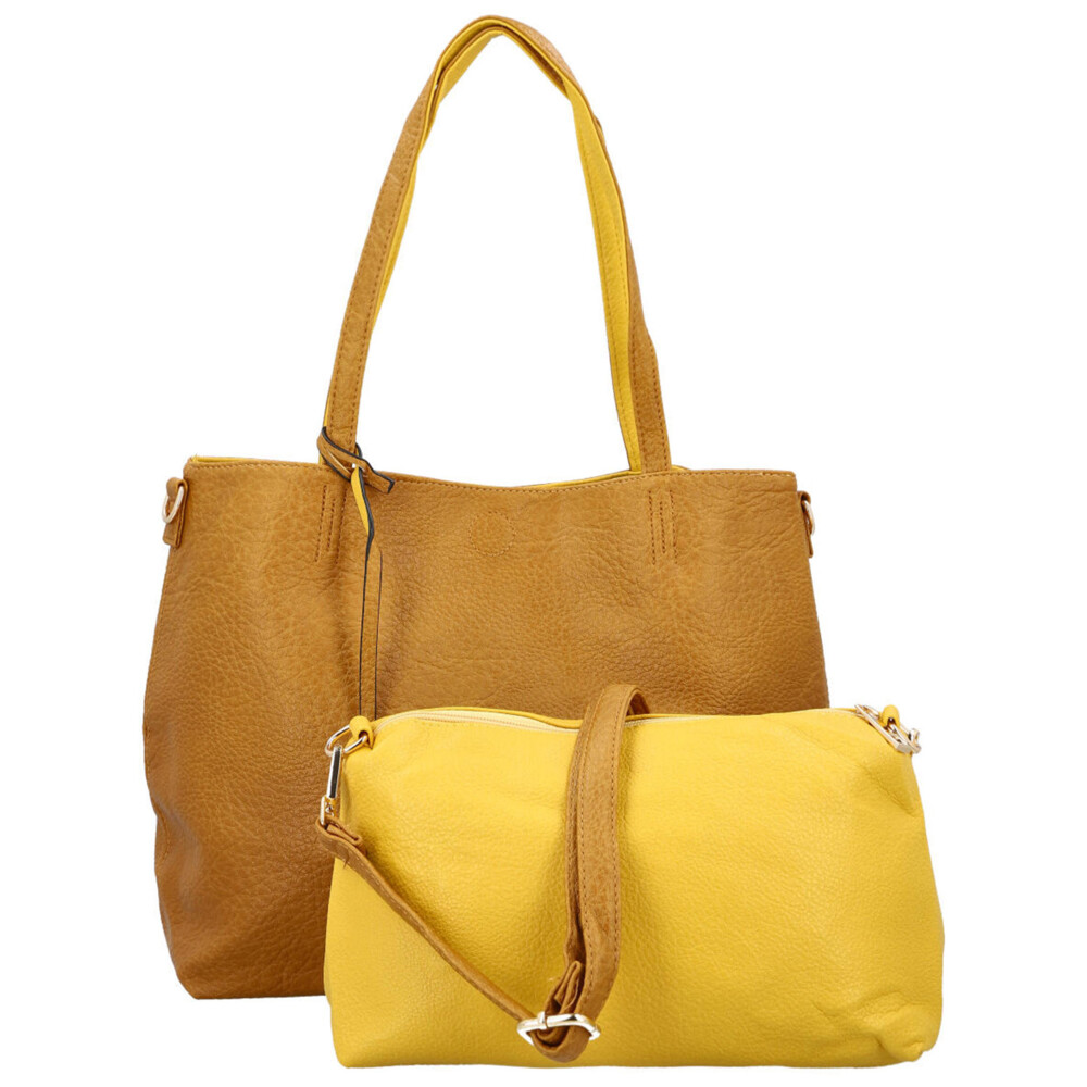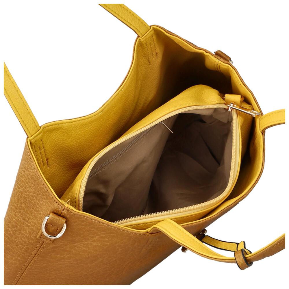 Objavte nadčasovú eleganciu inšpirovanú Talianskom. Dámska kabelka Firenze je ideálnou voľbou pre ženy, ktoré chcú byť štýlové a zároveň praktické. Dominantná koňaková shopper kabelka pôsobí luxusne a výrazne, zatiaľ čo menšia žltá kabelka dodáva celku svieži kontrast. Vďaka tomu získavate univerzálny doplnok vhodný ako do mesta, tak do práce či na voľný čas a nákupy. Set 2v1 vám umožní variabilné nosenie - veľká kabelka cez rameno na každodenné nosenie a menšie crossbody na ľahké a rýchle pochôdzky. Dlhé uši pohodlne sedia na ramene a nastaviteľný popruh pri menšej kabelke umožňuje prispôsobenie presne podľa vašich potrieb. Hlavný priestor sa zopína magnetom, malá crossbody sa zapína zipsom. Odnímateľný popruh je možné pripnúť k obom kabelkám. Celkovo sú obe kabelky mäkké z ľahko vráskavej umelej kože. Objednajte ešte dnes a vyskúšajte, vrátiť ju môžete až za 30 dní! Tieto farby vás budú baviť!