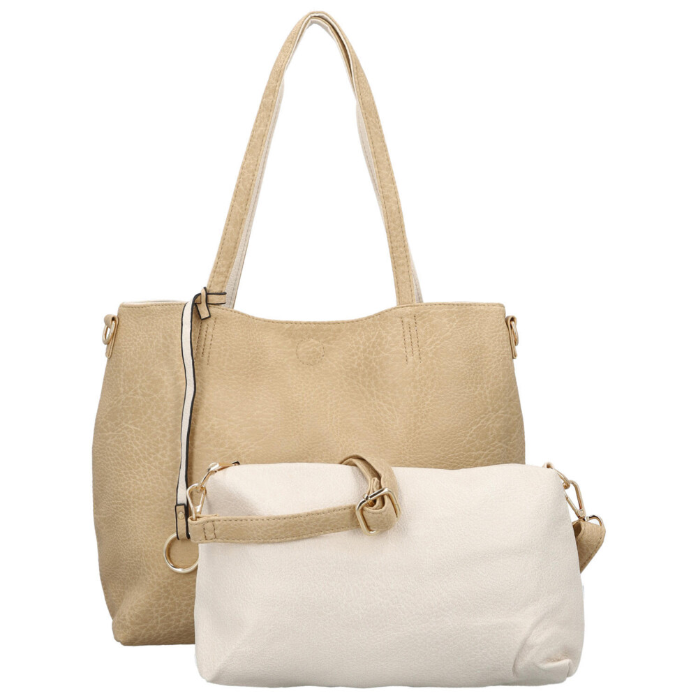Objavte nadčasovú eleganciu inšpirovanú Talianskom. Dámska kabelka Firenze je ideálnou voľbou pre ženy, ktoré chcú byť štýlové a zároveň praktické. Dominantná tmavo béžová shopper kabelka pôsobí luxusne a výrazne, zatiaľ čo menšia krémová kabelka dodáva celku svieži kontrast. Vďaka tomu získavate univerzálny doplnok vhodný ako do mesta, tak do práce či na voľný čas a nákupy. Set 2v1 vám umožní variabilné nosenie - veľká kabelka cez rameno na každodenné nosenie a menšie crossbody na ľahké a rýchle pochôdzky. Dlhé uši pohodlne sedia na ramene a nastaviteľný popruh pri menšej kabelke umožňuje prispôsobenie presne podľa vašich potrieb. Hlavný priestor sa zopína magnetom, malá crossbody sa zapína zipsom. Odnímateľný popruh je možné pripnúť k obom kabelkám. Celkovo sú obe kabelky mäkké z ľahko vráskavej umelej kože. Objednajte ešte dnes a vyskúšajte, vrátiť ju môžete až za 30 dní! Tieto farby vás budú baviť!