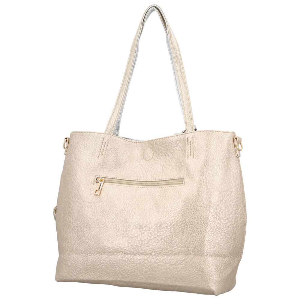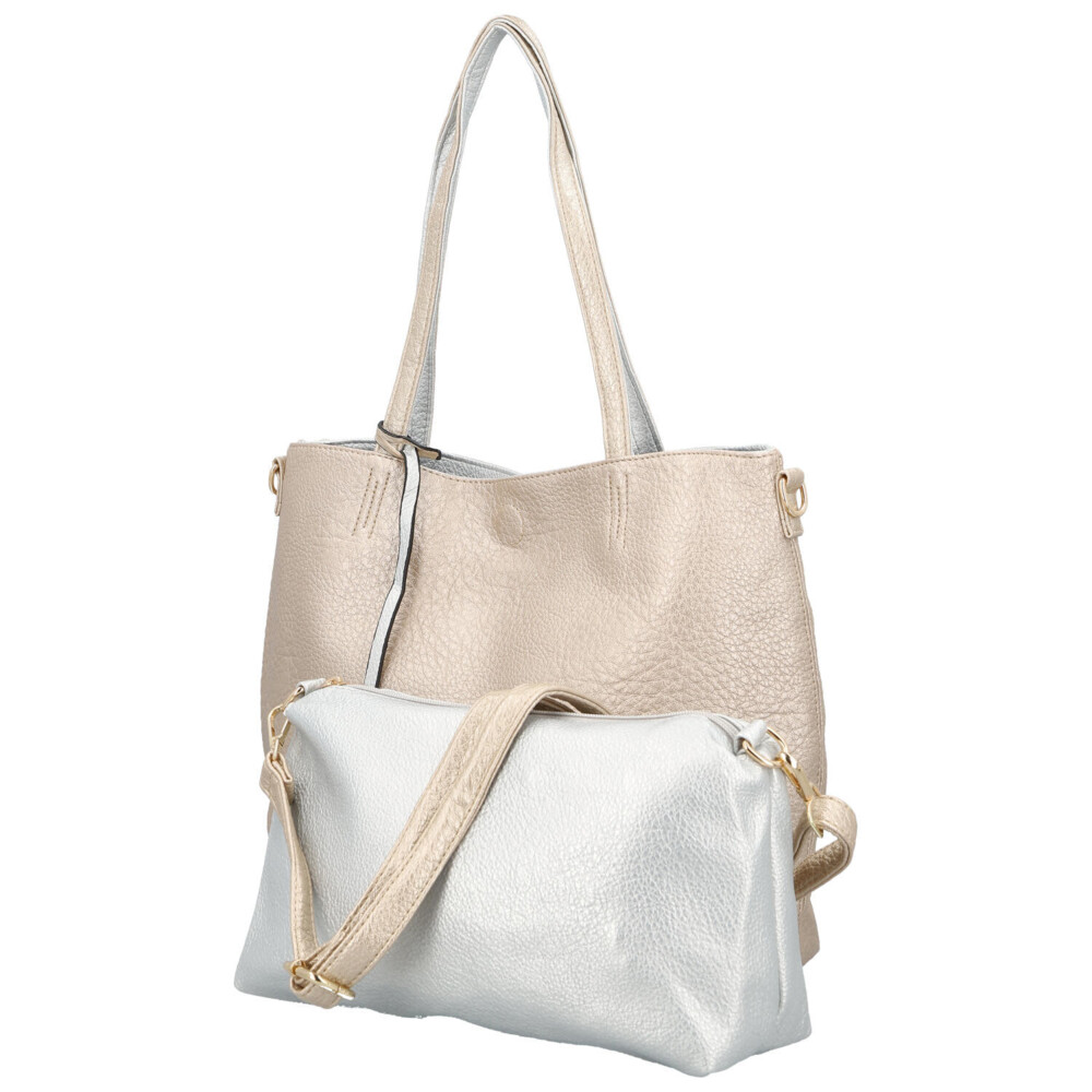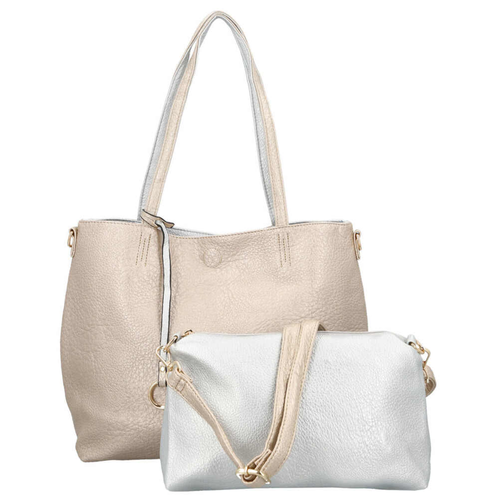 Objavte nadčasovú eleganciu inšpirovanú Talianskom. Dámska kabelka Firenze je ideálnou voľbou pre ženy, ktoré chcú byť štýlové a zároveň praktické. Dominantná zlatá shopper kabelka pôsobí luxusne a výrazne, zatiaľ čo menšia strieborná kabelka dodáva celku svieži kontrast. Vďaka tomu získavate univerzálny doplnok vhodný ako do mesta, tak do práce či na voľný čas a nákupy. Set 2v1 vám umožní variabilné nosenie - veľká kabelka cez rameno na každodenné nosenie a menšie crossbody na ľahké a rýchle pochôdzky. Dlhé uši pohodlne sedia na ramene a nastaviteľný popruh pri menšej kabelke umožňuje prispôsobenie presne podľa vašich potrieb. Hlavný priestor sa zopína magnetom, malá crossbody sa zapína zipsom. Odnímateľný popruh je možné pripnúť k obom kabelkám. Celkovo sú obe kabelky mäkké z ľahko vráskavej umelej kože. Objednajte ešte dnes a vyskúšajte, vrátiť ju môžete až za 30 dní! Tieto farby vás budú baviť!