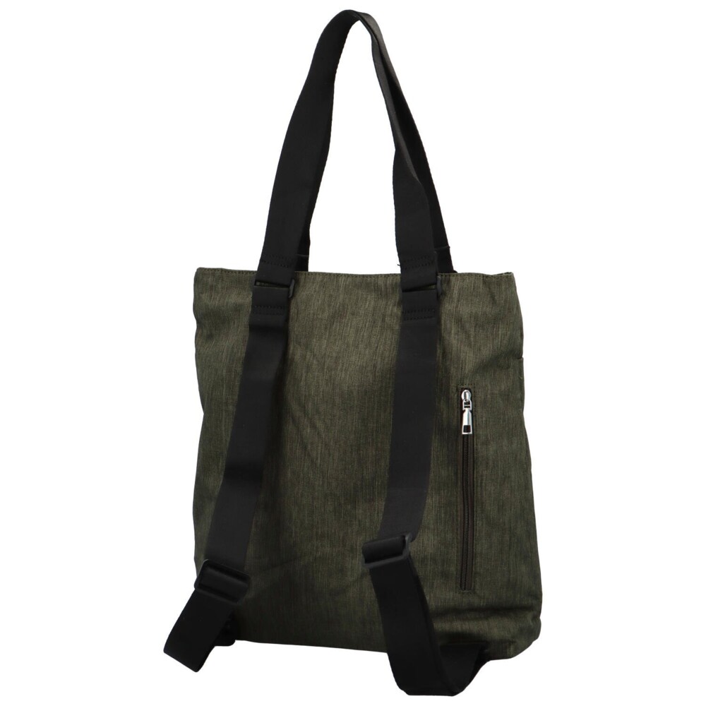 Tento kúsok od značky Sanchez je úžasný vďaka príjemnej olivovo zelenej textílii, ktorá vám skvele padne k telu, ale aj tým, že sa dá využiť ako kabelka aj ako batoh. Dlhé látkové uchá skvele padnú do ruky aj na rameno a v zadnej časti potom látkové nastaviteľné popruhy na nosenie na chrbte. Hlavné vrecko je na zips, vo vnútri nájdete stredové zipsové vrecko a ďalšie menšie bočné vrecká v podšívke. V zadnej aj prednej časti je tiež malé zipsové vrecko. Objednajte ešte dnes a vyskúšajte! Vrátiť ho môžete až do 30 dní!