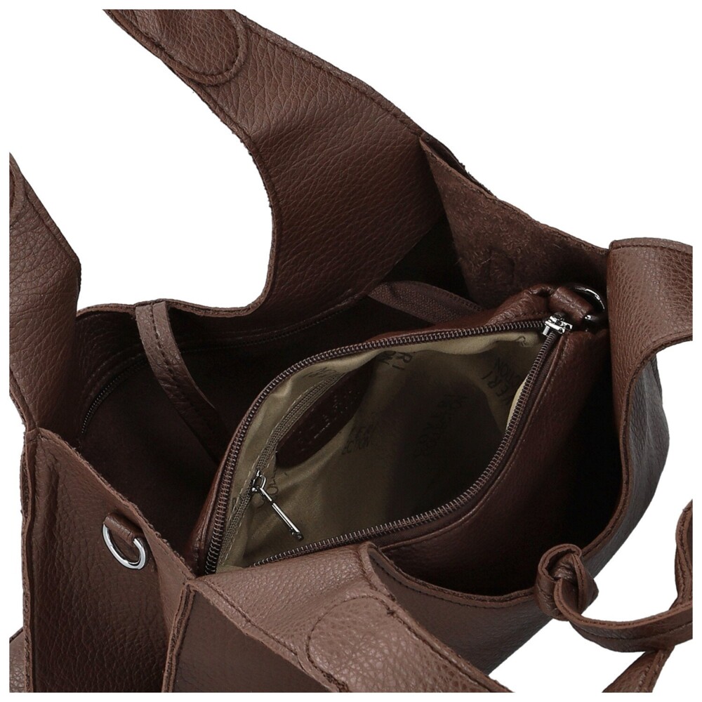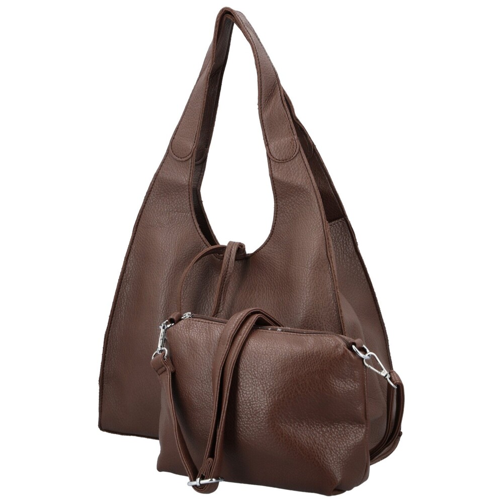 Elegantný set dámskych kabeliek z koženky ponúka štýl aj praktickosť v dokonale zladenej dvojici. Väčšia kabelka s originálnym trojuholníkovým strihom pôsobí moderne a žensky. Má pevné uši pre pohodlné nosenie na ramene a hlavné vrecko na zips, do ktorého sa zmestí všetko potrebné pre váš deň. Menšia kabelka v sete je skvelým organizérom do väčšej kabelky, ale vďaka dlhému nastaviteľnému popruhu ju môžete nosiť aj samostatne ako crossbody kabelku. Popruh sa dá odopnúť alebo pripnúť aj na väčšiu kabelku, takže s jedným setom získate hneď niekoľko štýlov nosenia. Celkový dojem podčiarkuje jemné strieborné kovanie, ktoré dodáva luxusný akcent. Praktický a elegantný doplnok, ktorý sa prispôsobí vám aj vášmu tempu. Objednajte ešte dnes a vyskúšajte, vrátiť ju môžete až do 30 dní!