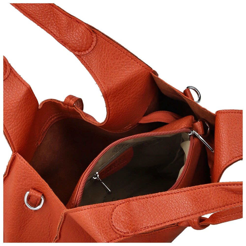 Elegantný set dámskych kabeliek z koženky ponúka štýl aj praktickosť v dokonale zladenej dvojici. Väčšia kabelka s originálnym trojuholníkovým strihom pôsobí moderne a žensky. Má pevné uši pre pohodlné nosenie na ramene a hlavné vrecko na zips, do ktorého sa zmestí všetko potrebné pre váš deň. Menšia kabelka v sete je skvelým organizérom do väčšej kabelky, ale vďaka dlhému nastaviteľnému popruhu ju môžete nosiť aj samostatne ako crossbody kabelku. Popruh sa dá odopnúť alebo pripnúť aj na väčšiu kabelku, takže s jedným setom získate hneď niekoľko štýlov nosenia. Celkový dojem podčiarkuje jemné strieborné kovanie, ktoré dodáva luxusný akcent. Praktický a elegantný doplnok, ktorý sa prispôsobí vám aj vášmu tempu. Objednajte ešte dnes a vyskúšajte, vrátiť ju môžete až do 30 dní!