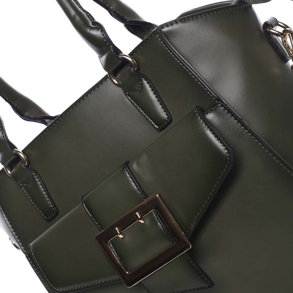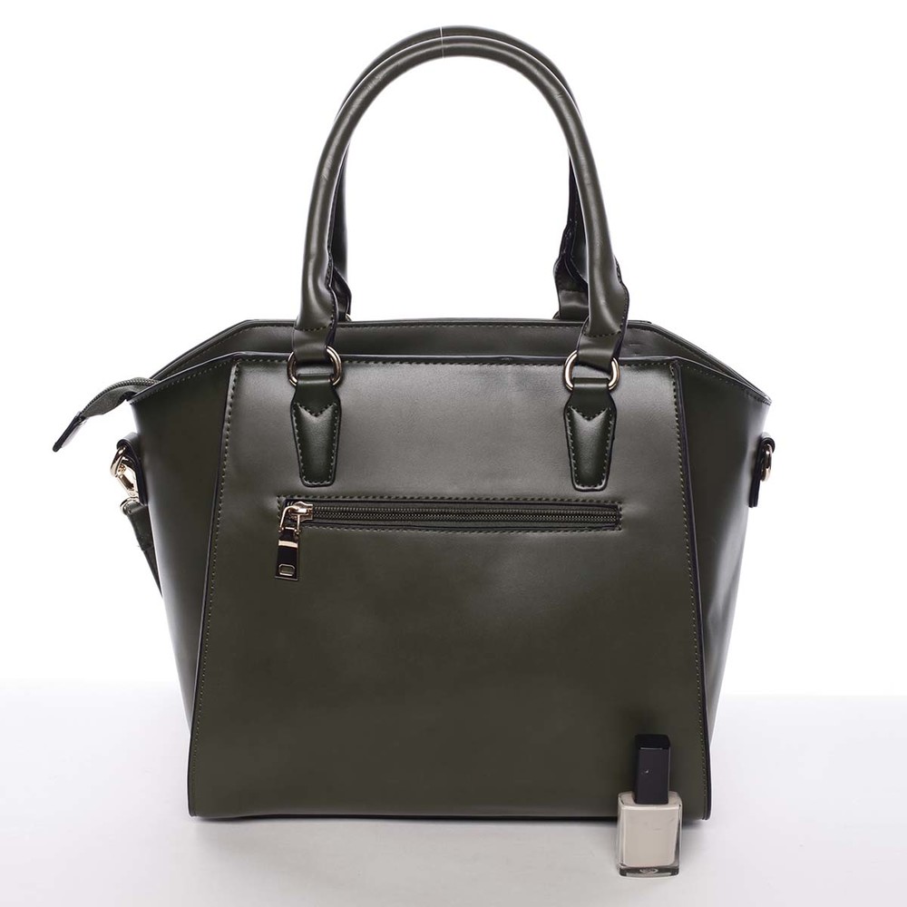 Veľmi obľúbenou novinkou značky MARIA C. je táto luxusná pevnejšia tmavo zelená kabelka. Skvelou voľbou k outfitu sa stáva v prípade vynesenie sa do spoločnosti alebo do mesta. Stredná veľkosť zaručuje akurátnej priestor pre osobné veci a dizajn ohromí ako Vás, tak i spoločnosť okolo. Objednajte ešte dnes a vyskúšajte, vrátiť ju môžete až za 30 dní! Detail, na ktorý padnú Vaše oči ako prvá je zlatá spona na prednom vrecku, zapína sa však skrytým magnetickým cvočky. Kabelka disponuje bočnými úchytmi pre nastaviteľný popruh a sponami na spodnej časti, ktoré kabelku chránia pred odrením a ušpinením. Hlavné vrecko na zips Vám ponúkne klasické kapsičky na telefón, drobnosti a cennosti. Nechýba tu vrecko so zipsom na zadnej strane kabelky.