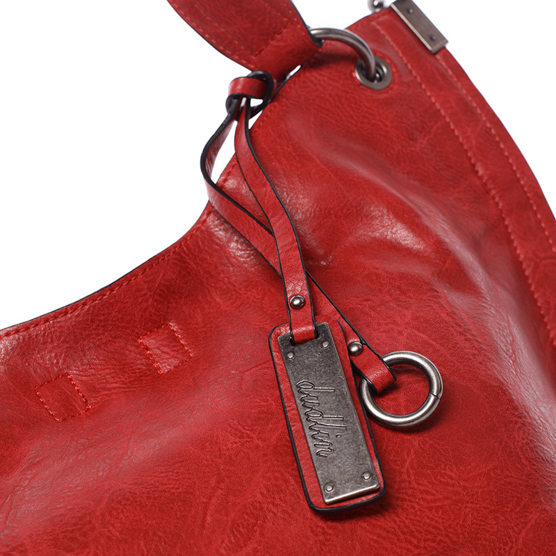 Módna novinka od Dudlin ! Mäkká červená kabelka ku všetkým každodenným príležitostiam. Kabelka je väčšia, mäkká s pevným dnom a vynímateľným organizérom, ku ktorému možno pripevniť popruh. Hlavné vrecko je priestranné s menšími vreckami na drobnosti. Popruh je odnímateľný a nastaviteľný. Kabelka má jednoduchý, ale moderný dizajn. Táto kabelka pre každý deň vkusne oživí Váš outfit. Objednajte ešte dnes a vyskúšajte, vrátiť ju môžete až do 30 dní!