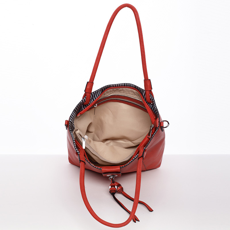 Nová sezóna prináša nové trendy a tak by ste aj Vy mala ísť s dobou. Pre každodenné nosenie je tu pre Vás originálna módna červená kabelka MARIA C Deborah. V jednoduchosti je krása a to návrhári tejto kabelky veľmi dobre vedia, a preto zvolili jasný a čistý dizajn. Tento praktický módny doplnok čaká len na Vás. Kabelka je mäkkás pevnejším dnom. Hlavná kapsa je rozdelená vreckom na zips na dve časti a zatvárasa tiež zipsom. Na zadnej strane je tiež menšie vrecko na zips. Vnútri kabelky sa nachádza ďalšie menšie kapsičky, ktoré využijete na drobnosti či cennosti. Objednajte ešte dnes a vyskúšajte, vrátiť ju môžete až za 30 dní!