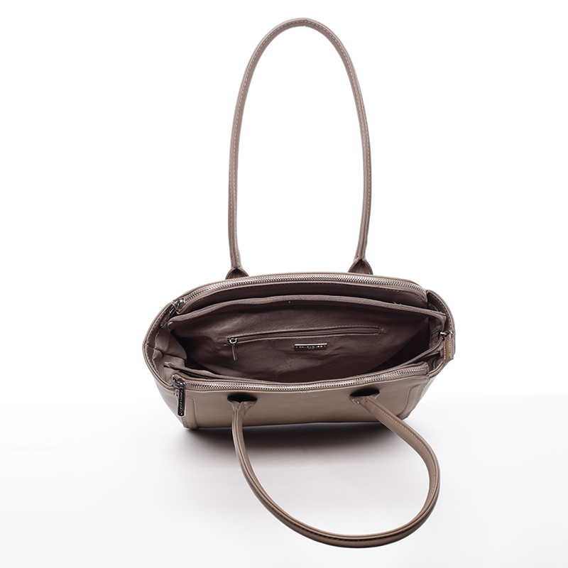 Módna khaki kabelka cez rameno z kolekcie David Jones poteší každú modernú a praktickú ženu ako praktický módny doplnok. Je veľmi trendy a spĺňa všetky požiadavky kabelky pre každodenné nosenie. Je strednej veľkosti s jednoduchým dizajnom a striebornými detailmi. Je pevnejšia a jej spodná časť má cvoky proti odreniu a zašpineniu. Má tri vrecká na zips a na zadnej strane ďalšie menšie vrecko. Objednajte ešte dnes a vyskúšajte, vrátiť ju môžete až za 30 dní!