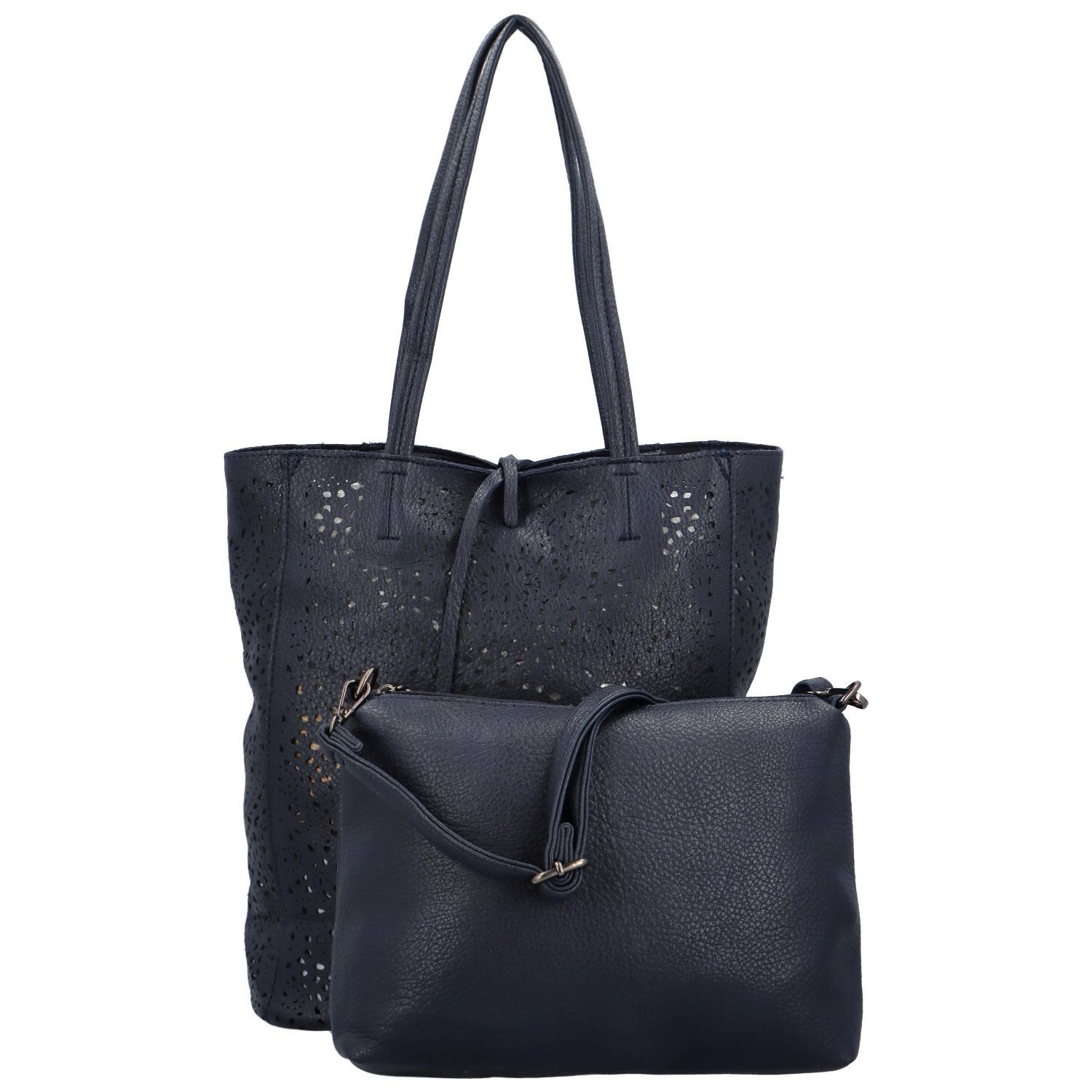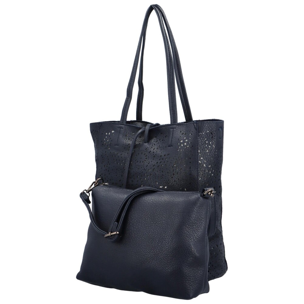Luxusná sada tmavomodrých koženkových kabeliek, od MaxFly, pre ženy, do spoločnosti aj do mesta. Obsahuje väčšiu kabelku s pevnými ušami cez rameno a menšiu kabelku s nastaviteľným popruhom, ktorú je možné nosiť samostatne alebo pripnúť dovnútra väčšej kabelky ako vrecko navyše. Väčšia kabelka je dizajnovo perforovaná a veľmi krásna, oživuje ju jemná sťahovacia šnúrka pre lepšie zabezpečenie hlavného vrecka. Menšia kabelka je mäkšia a vo vnútri sú k dispozícii priehradky na drobnejšie veci. Ku kabelke je prídavný popruh, na nosenie cez plece. Strieborné kovanie doladí štýl kabeliek. Objednajte ešte dnes a vyskúšajte! Vrátiť ju môžete až do 30 dní!