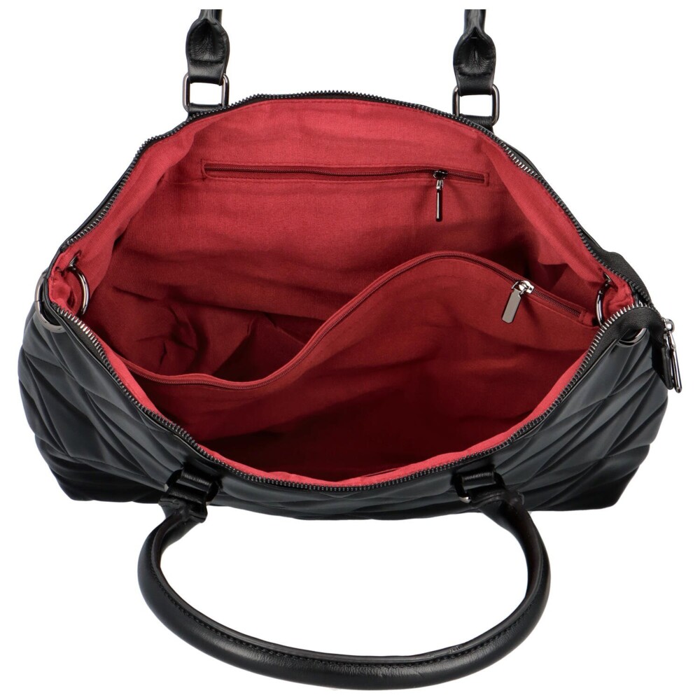 Štýlová veľká dámska prešívaná taška cez rameno s dostatočne dlhými pevnými ušami. Kabelka má módnu prešívanú prednú časť. Má dve pevné dlhšie uši na nosenie cez rameno a tiež na nosenie crossbody, keď sa pridá dlhý koženkový popruh. Hlavné vrecko, ktoré sa uzatvára na zips a po jeho otvorení ponúka veľkú priehradku rozdelenú stredovou podšívkou na zips. Vnútri po stranách tašky sú malé vrecká, z ktorých jedno je uzatvárateľné na zips. Na zadnej strane kabelky je tiež vrecko na zips. Krásna trendy veľká kabelka značky DIANA & CO. Gisela. Tak si ju objednajte ešte dnes a vyskúšajte, môžete ju vrátiť do 30 dní.