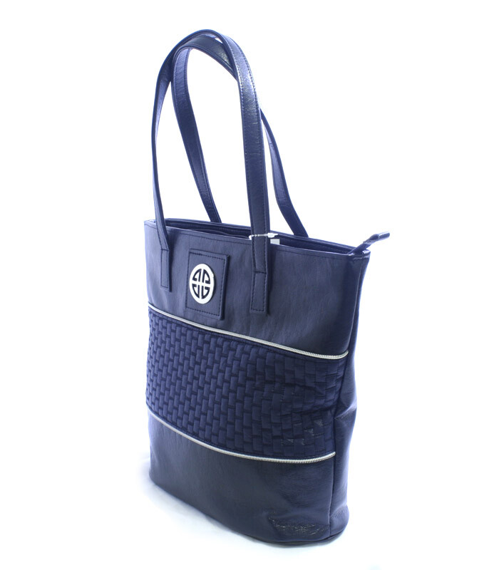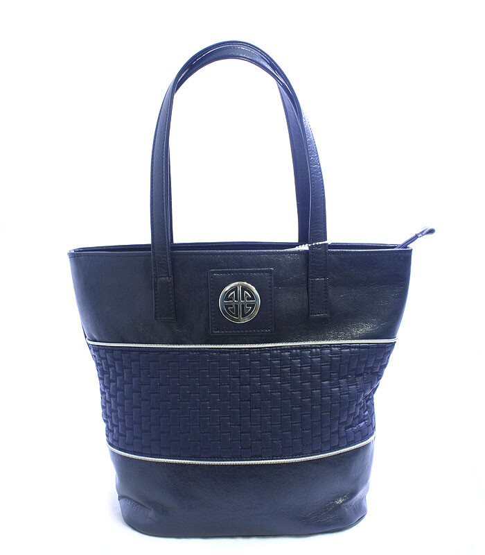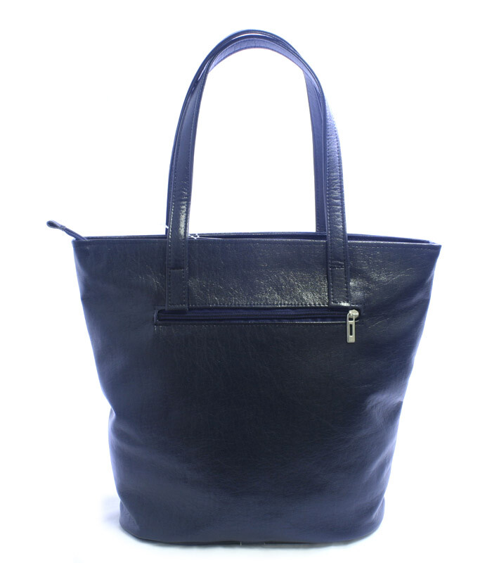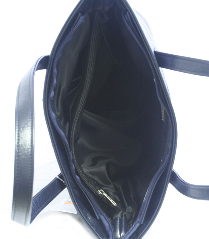 Elegantná ľahučká tmavo modrá kabelka DAMA cez rameno na zips. Vnútri - rozdelená vreckom na zips, ďalej dve vrecká bez zipsu a jedno na zips. Zozadu - vrecko na zips. Kabelku možno nosiť na pleci alebo v ruke. Materiál - koženka, kabelka je odľahčená.