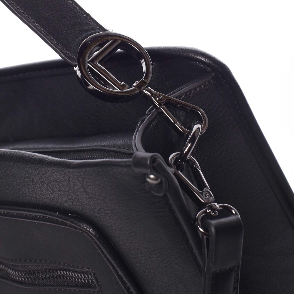 Kabelka značky MARIA C , ktorú môžete nosiť v ruke aj cez rameno, vyberte si z dvoch odnímateľných popruhov, je novinkou zimná kolekcia roku 2018. Táto unikátna taška bude pre nosenie v meste aj v práci istou formou elegancie. Brániť sa určite nebude celoročnému nosené. Dominantou kabelky je stredná časť, ktorá je v dizajne umelej brúsenej kože. Je čierna, s čiernymi detailmi, pevná a strednej veľkosti. Hlavné vrecko sa zapína zipsom, vnútorný priestor je delený prepážkou v podobe vrecká so zipsom. Na stenách tašky sú menšie vrecká na drobnosti, cennosti či kozmetiku. Ďalšie vrecká so zipsami nájdete na prednej a zadnej strane kabelky. Objednajte ešte dnes a vyskúšajte, vrátiť ju môžete až za 30 dní!