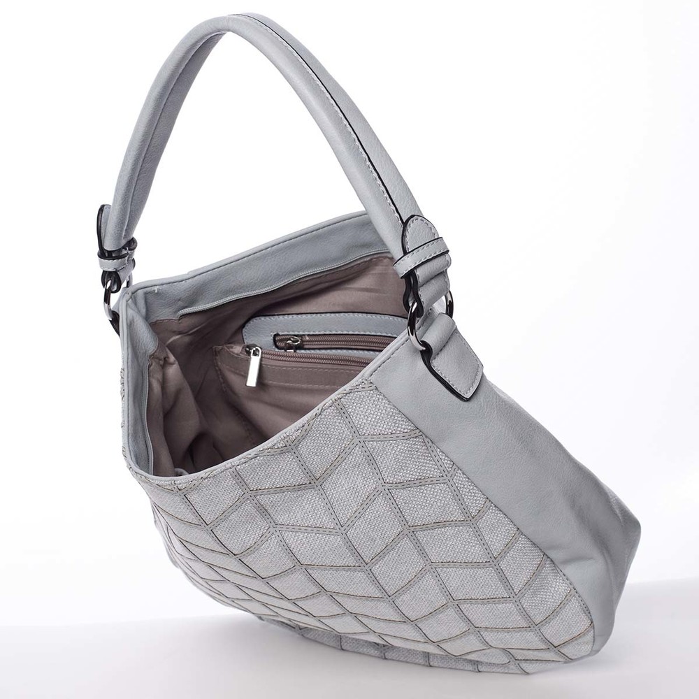 MARIA C prináša kabelku v štýle "hobo bag" .. ide o väčšiu svetlo modrou tašku, do ktorej sa zmestí veľa vecí. Má stredne dlhé ucho, vďaka ktorému ju možno nosiť cez rameno, väčšina z takýchto tašiek disponujú aj popruhom, rovnako ako táto. Má uvoľnenejšie mäkký dizajn a klasický charakter. Predná strana je vytvorená v originálnom pololátkovém dizajne. Vnútorný priestor ponúka ďalšie tri voľné vrecká na telefón, peňaženku a kozmetiku a dve vrecká so zipsom na cennosti a drobnosti. Dno kabelky je pevnejšia. Objednajte ešte dnes a vyskúšajte, vrátiť ju môžete až za 30 dní! Najnovší trend je tu, nesmie Vám v šatníku chýbať!
