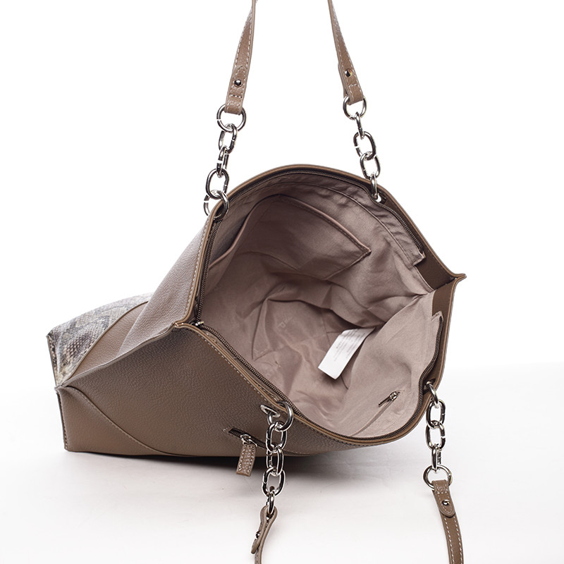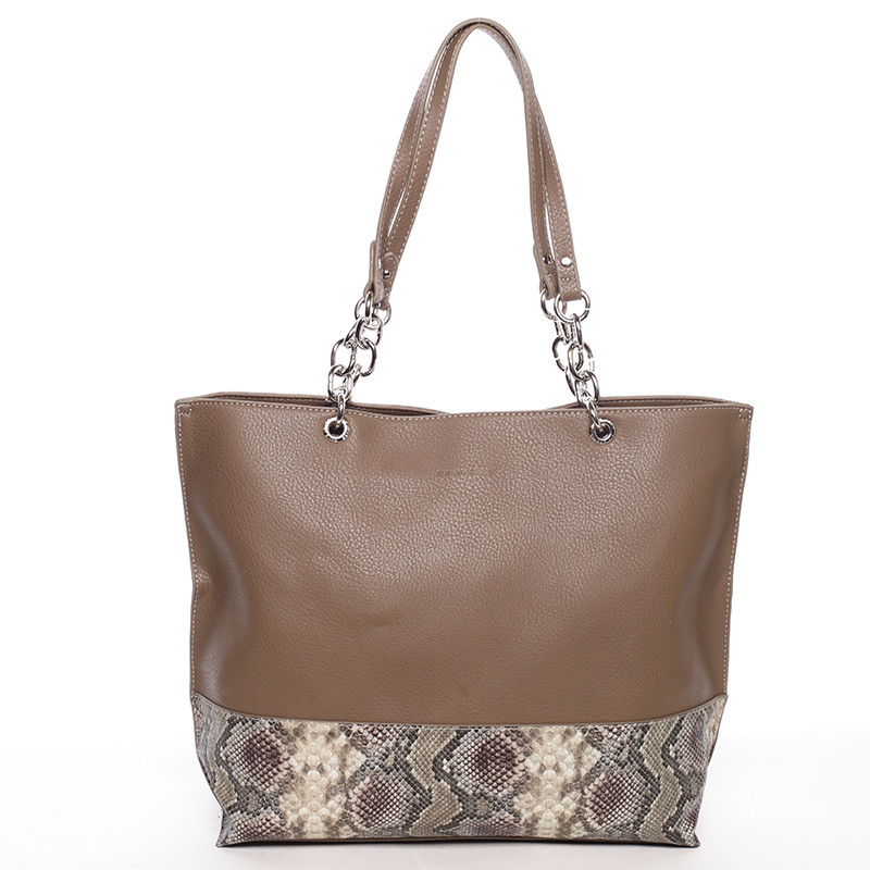Prichádza novinka jesennej kolekcie 2017 od značky David Jones . Originalita, veľkosť, priestor, hadí vzor v tmavej camel farbe. Kabelka sa nosí cez rameno alebo aj v ruke, jej uši sú z jednej tretiny zo striebornej reťaze, zvyšok je zo syntetickej kože. Má jednu hlavnú kapsu, ktorá sa uzatvára zipsom. Na zips sú ešte jedno menšie zadné vonkajšie vrecko a jedno zadné vnútorné vrecko. Vnútri kabelky samozrejme nájdete ešte dve voľné kapsičky na telefón, peňaženku, kozmetiku alebo drobnosti. Hadí vzor je len na spodnej časti prednej strany tašky. Zvoľte si kabelku, ktorá Vás vystihne a stane sa Vašou najobľúbenejšou. Objednajte ešte dnes a vyskúšajte, vrátiť ju môžete až do 30 dní!