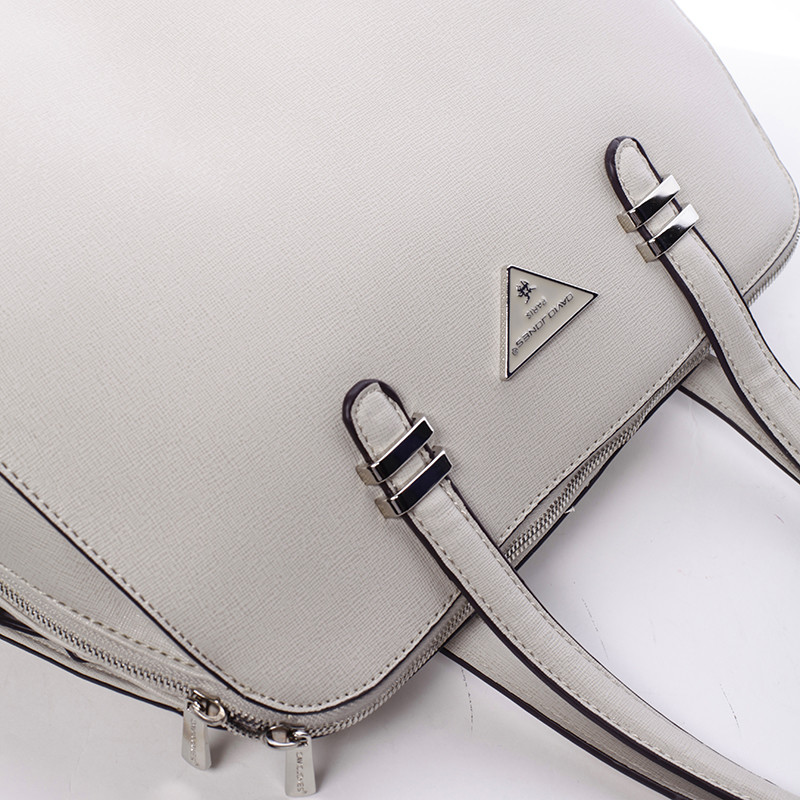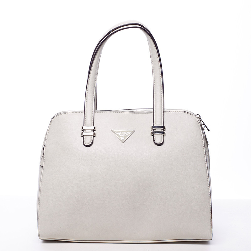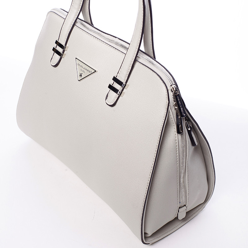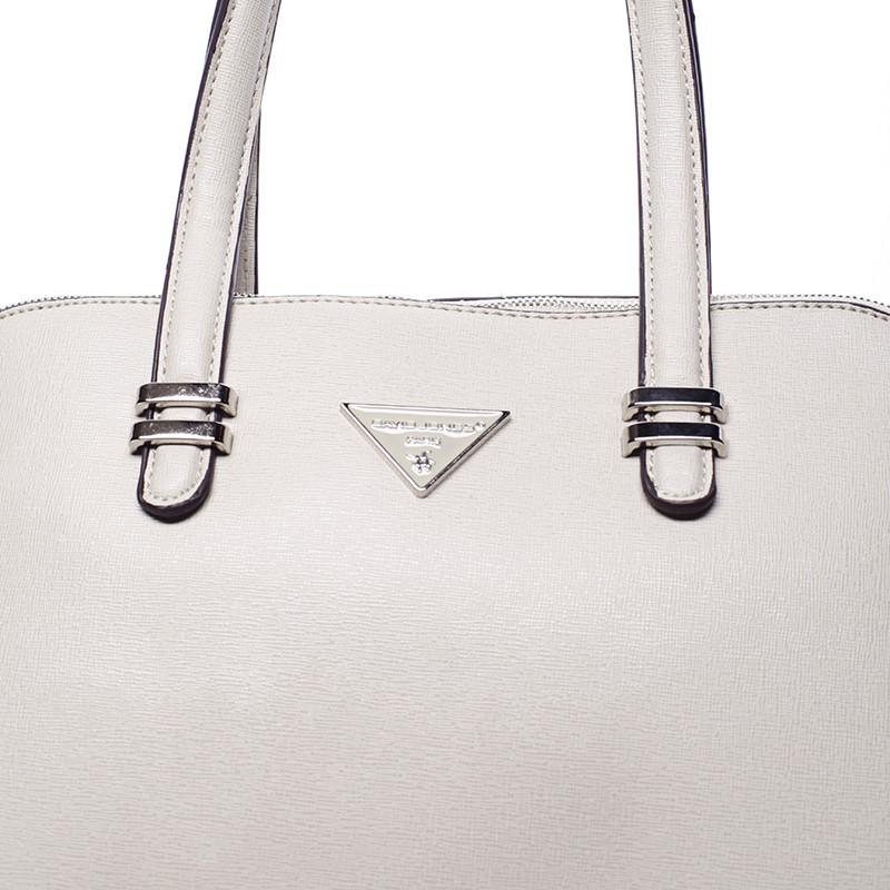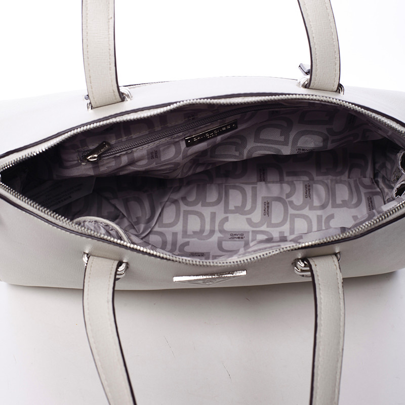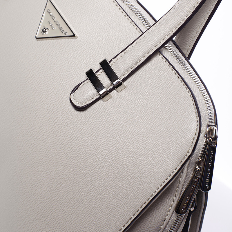 Béžová luxusná kabelka do ruky David Jones. Naozaj vydarený kúsok v štýle Prada. Vnútri je nedelený priestor a postranné kapsičky na mobil alebo peňaženku. Podšívka je posiata logami DJ. Kabelku môžete nosiť cez rameno s popruhom alebo v ruke. Zospodu sú ochranné cvočkami. Novinka jar 2016!