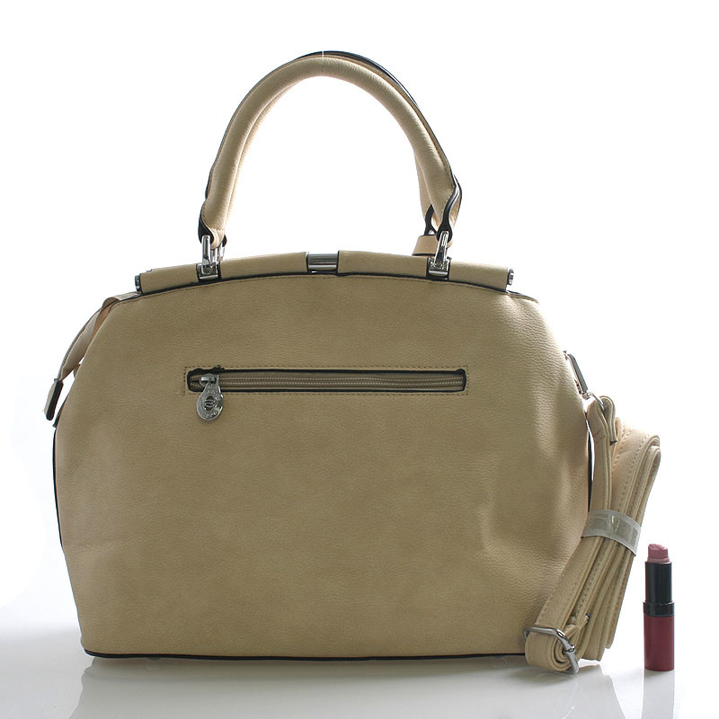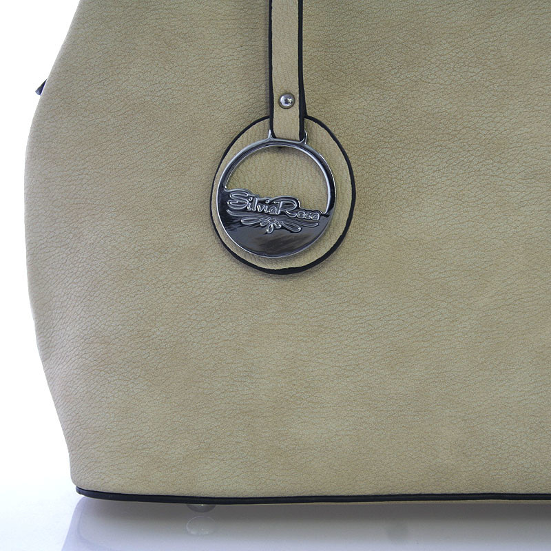 Béžová elegantná kabelka do ruky Silvia Rosa. Príjemný materiál, jednoduchý ale zároveň nadčasový dizajn. Prídavný popruh pre nosenie kabelky cez rameno. Vnútri je delený priestor vreckom na zips, na jednej strane má vrecko na zips a naproti dve otvorené na drobnosti. Zozadu má menšiu kapsu na zips. Novinka a ideálne kabelka napríklad do spoločnosti pre rok 2016!