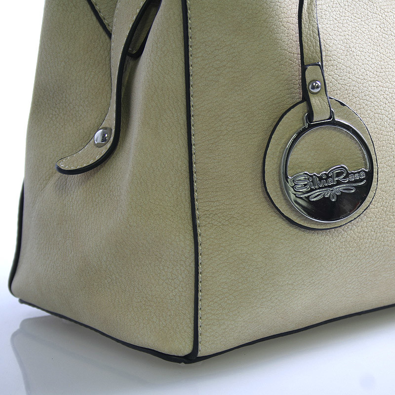 Béžová elegantná kabelka do ruky Silvia Rosa. Príjemný materiál, jednuduchý ale zároveň nadčasový dizajn, ochranné cvočky proti zašpineniu naspodku, prídavný popruh pre nosenie kabelky cez rameno. Vnútri je delený priestor vreckom na zips, na jednej strane má vrecko na zips a naproti dve otvorené na drobnosti. Zozadu má menšiu kapsu na zips. Novinka a ideálne kabelka do spoločnosti pre rok 2016!