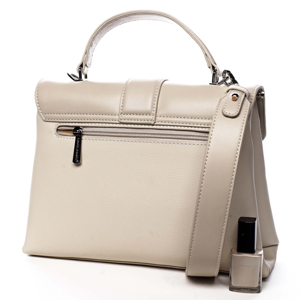 Pre dámy, ktoré chcú vyzerať skvele a elegantne v každej situácii, odporúčame túto béžovú kabelku do ruky David Jones. Kabelka má veľmi jemný a elegantný dizajn, je z mäkšieho materiálu, ostáva však stabilná. Chlopňa sa otvára kovovou sponou, pod ktorou nájdete hlavnú kapsu na zips. Jej priestor sa delí na dve časti. Sú tu teda dve hlavné vrecká oddelené prepážkou. Na telefón využijete stredne veľkú, voľnú kapsičku vnútri jednej z nich a na drobnosti môžete využiť menšie vrecko so zipsom, či už vo vnútri alebo na jej zadnej strane kabelky. Popruh, vďaka ktorému môžete nosiť kabelku aj cez plece, je širší. Objednajte ešte dnes a vyskúšajte, vrátiť ju môžete až za 30 dní! Možno odolať ?!