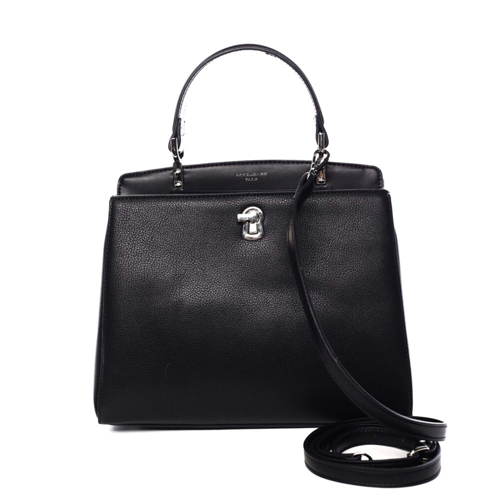 David Jones má niečo aj pre sebavedomé ženy. Tento čierny model spája eleganciu s biznisom. Reprezentatívny doplnok do práce, na schôdzku aj do mesta alebo na párty. Pevnejšia kabelka je navrhnutá pre ženy, ktoré milujú poriadok a klasickú eleganciu. Prednej strane dominuje štýlový kovový otočný zámok, ktorý slúži ako šperk aj praktické zabezpečenie predného vrecka. Hlavné vrecko sa uzatvára zipsom. Pevnejšie zaoblené ucho je perfektné na nosenie v ruke alebo na predlaktí. Súčasťou je aj odnímateľný popruh na nosenie cez rameno. Vďaka svojmu tvaru ponúka dostatok miesta pre vaše pracovné nevyhnutnosti, peňaženku aj tablet. Objednajte ešte dnes a vyskúšajte, vrátiť ju môžete až za 30 dní!
